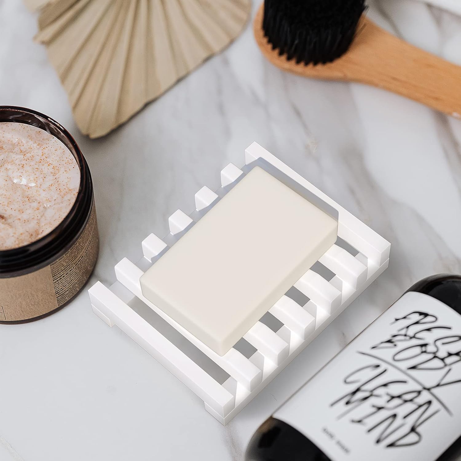 - MODERN SOAP SAVER - This silicone soap dish is with slanted design,helps preserve the life of your luxury soap by draining out water and dry the soap naturally. A perfect ventilation environment to help keep the soap clean.
