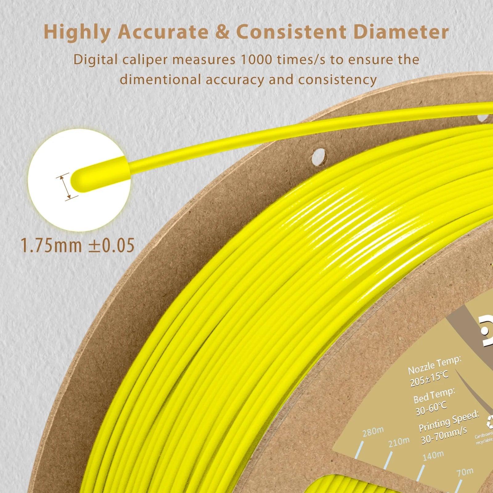 - 【Accurate &Consistent Diameter】Diameter: 1.75mm, tolerance 100% ±0.05mm, 99.9% ±0.04mm, 99% ±0.03mm and 97% ±0.02mm.