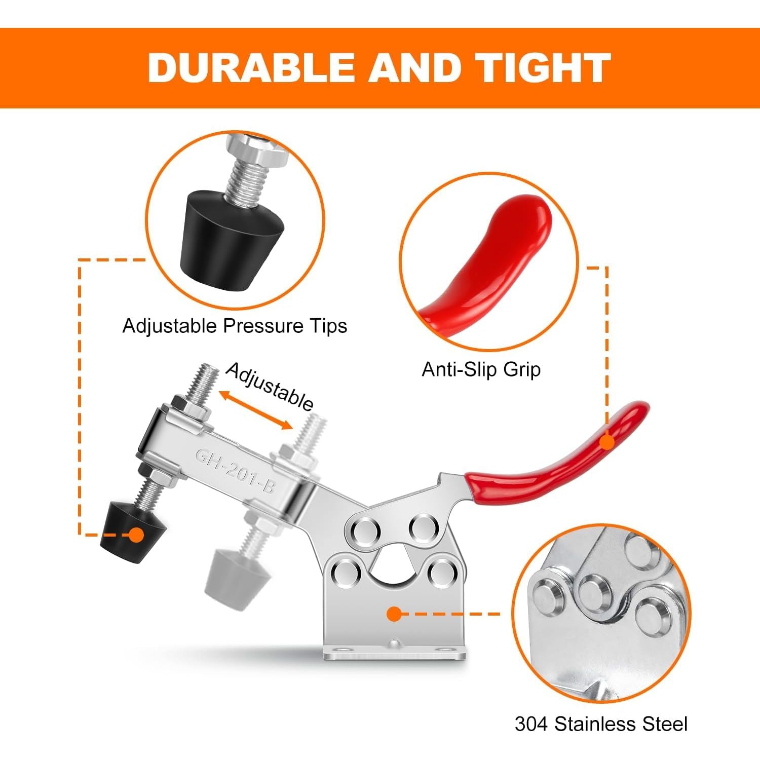 - 【Application】Rugged fixtures toggle clamp, mounted on jigs, tool holders or movable bases, are ideal for fast fixing of metal plates or boards for machine operations, woodworking, welding, molds and more.