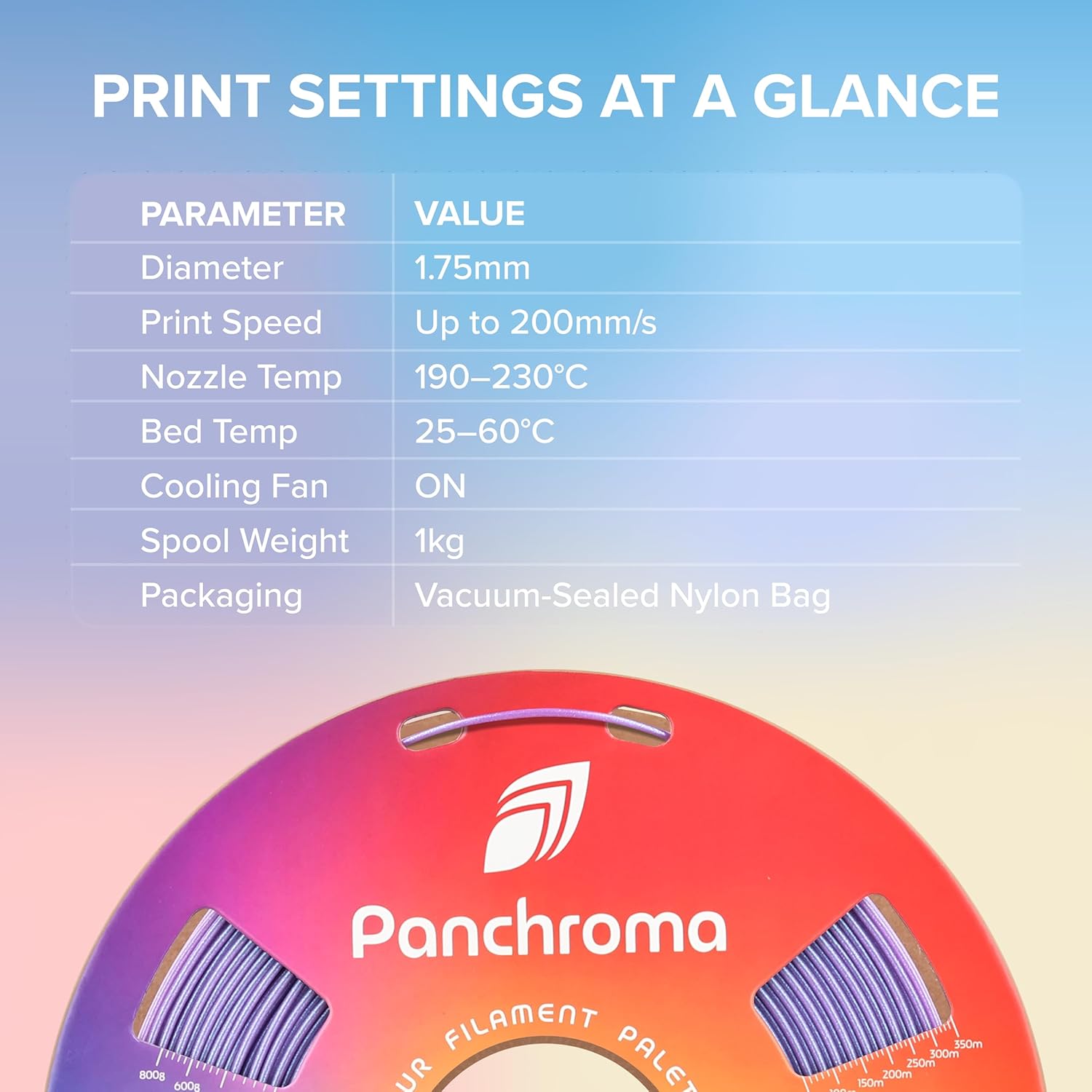 • Worry-Free Printing: No warping, jamming, blobs, or layer delamination. Panchroma 1.75mm PLA filament is compatible with most mainstream printers' default settings and supports high-speed printing.
