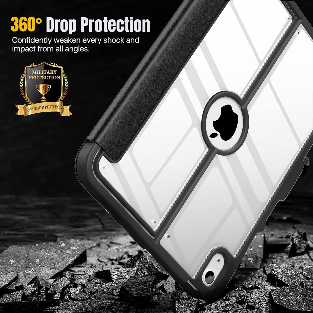 • Drop Absorption: The ipad 11th generation case with transparent hard PC back plate and flexible TPU shock absorbing frame, providing full body protection, enhances drop protection to withstand daily drops, bumps, shocks, and random accidents