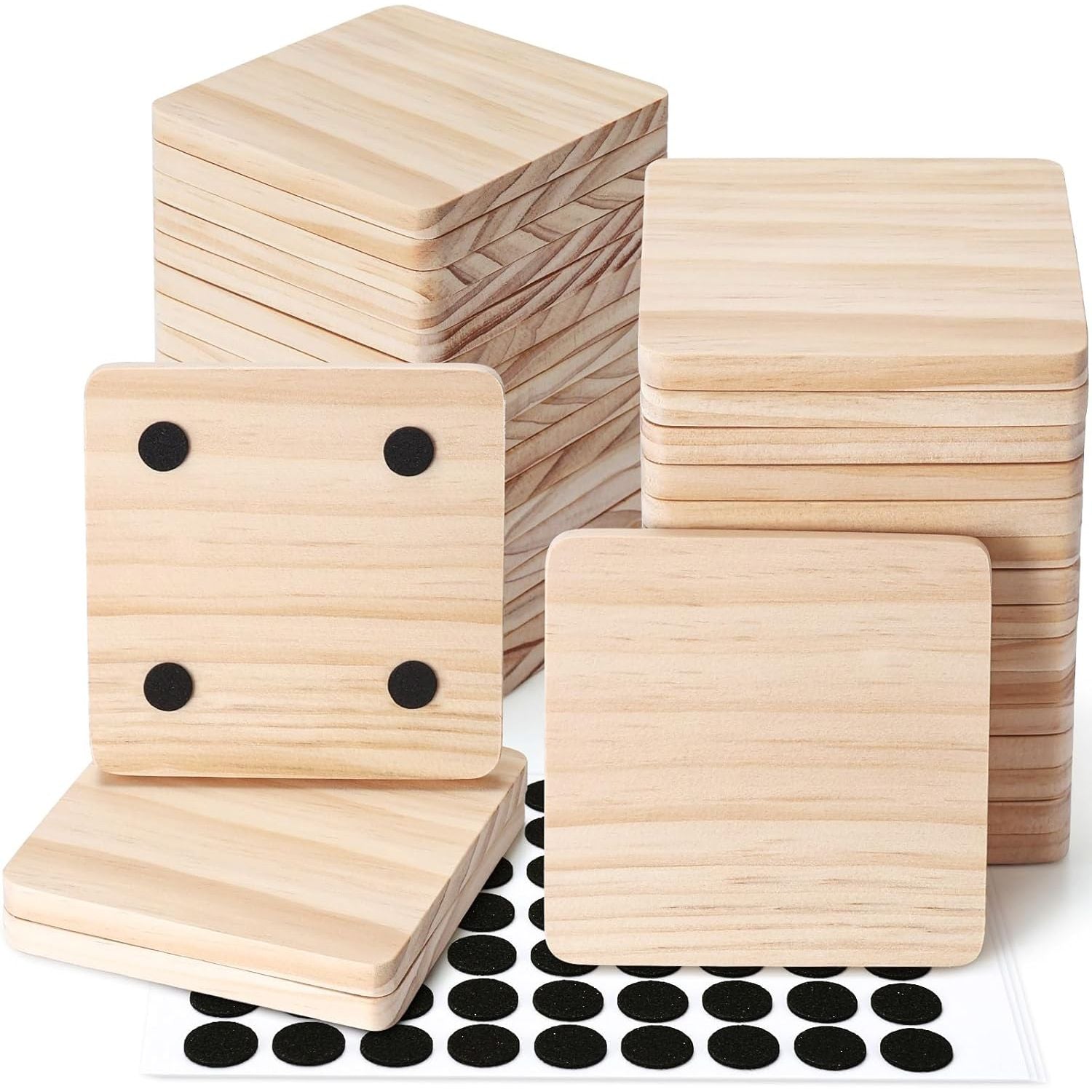 - UNFINISHED WOOD, SMOOTH SURFACE, NO SANDING REQUIRED: The pre-sanding process creates smooth surface, rounded corners. With no additional sanding required, these pine coasters are ready to use immediately, saving you time and effort and making your life easier. The eco-friendly design without coatings also ensures peace of mind during use.