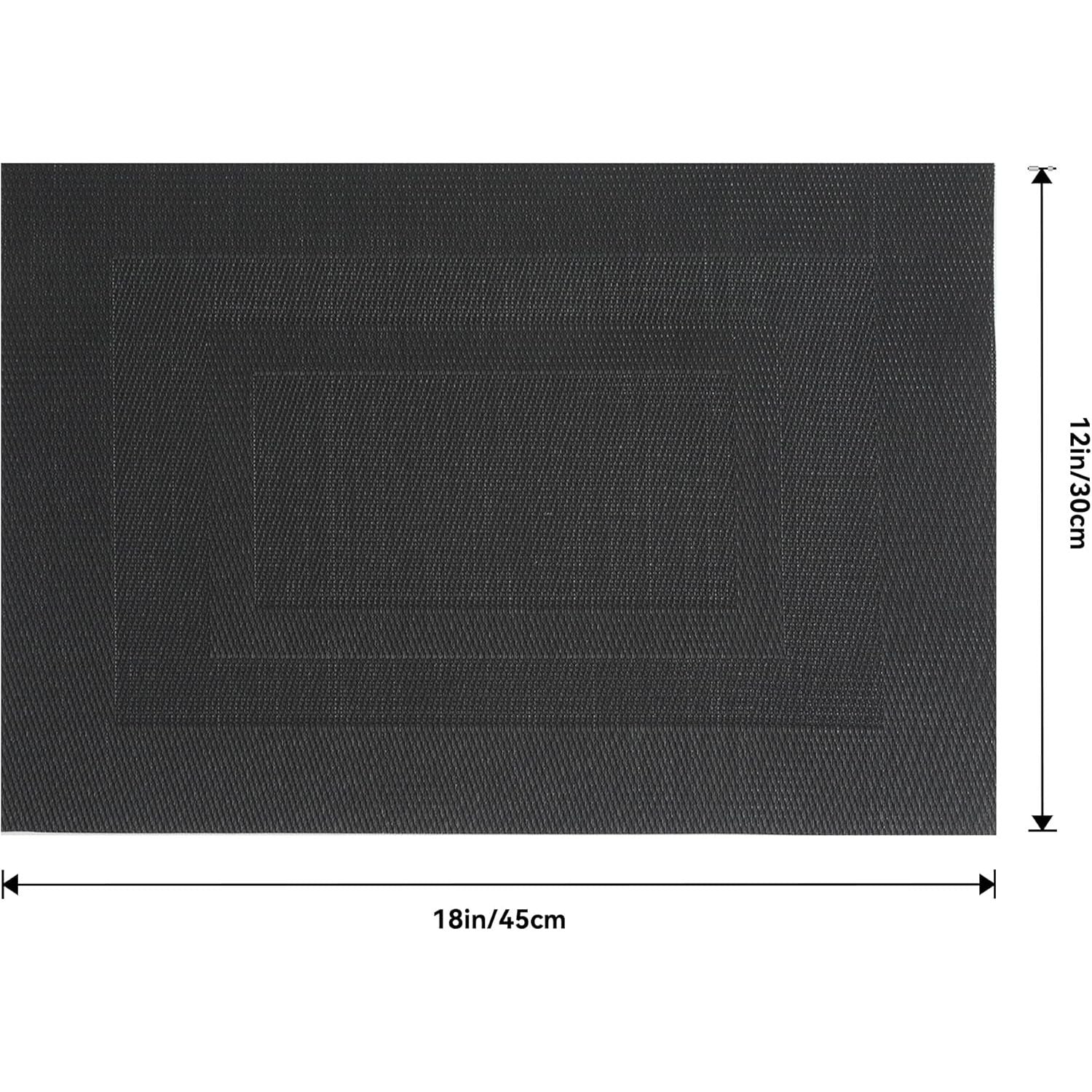 Black Frame Placemats Set of 4 - Heat Resistant Non - Slip Place mats for Dining Table, Washable Durable PVC Vinyl Woven Table Mats - Just Closeouts Canada Inc.