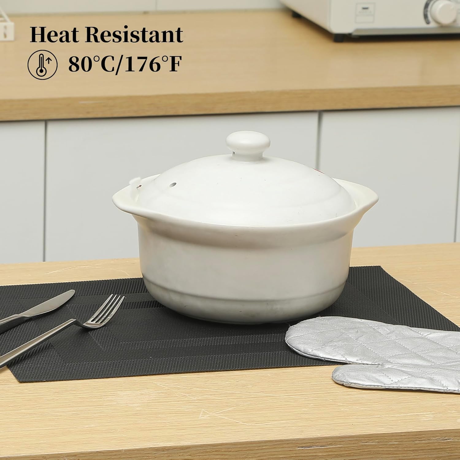 • Protects Your Table: Keep your table safe from scratches and spills with our heat-resistant placemats. They can withstand temperatures up to 176℉(80℃) and help keep food warm. Add style to your dining setting while ensuring table protection.