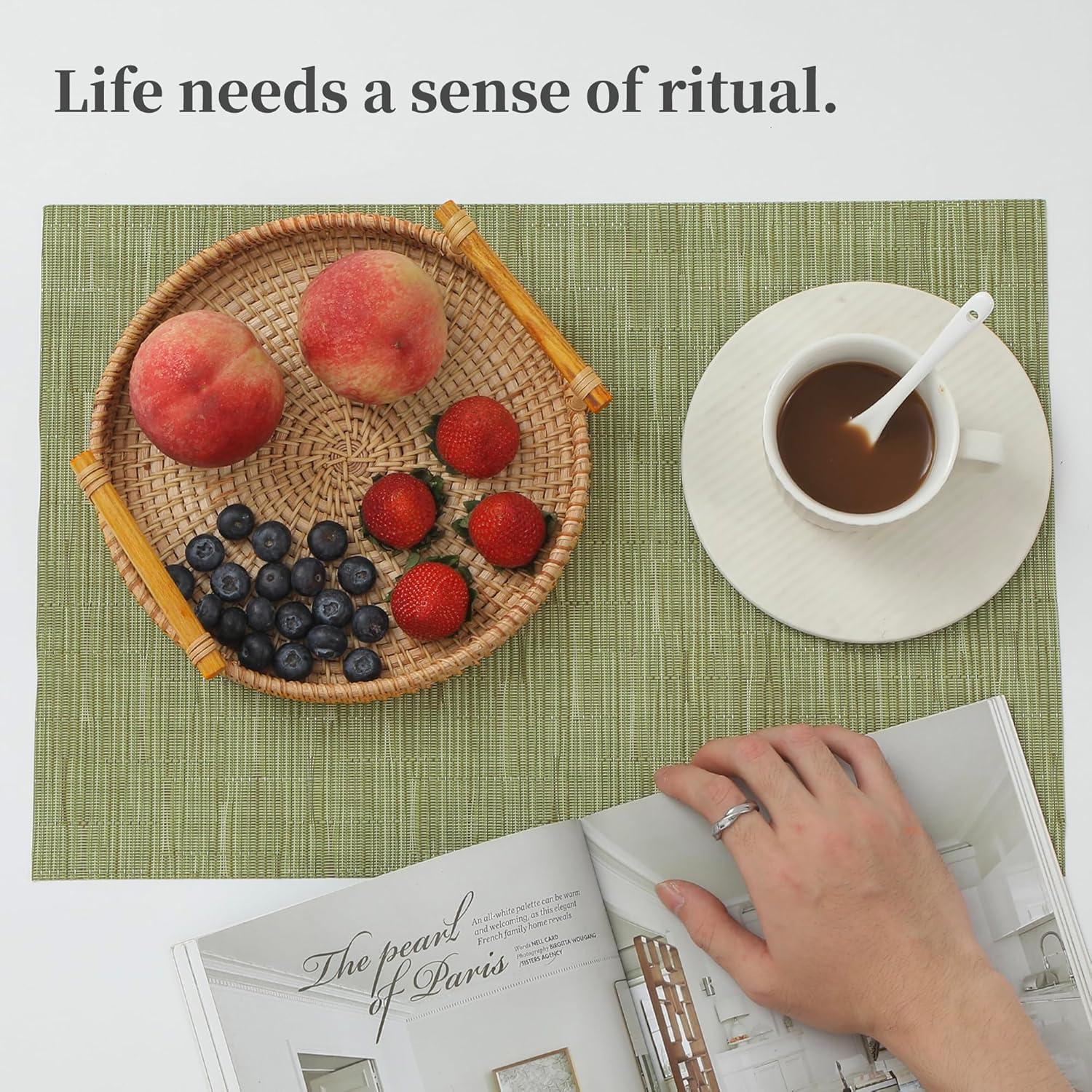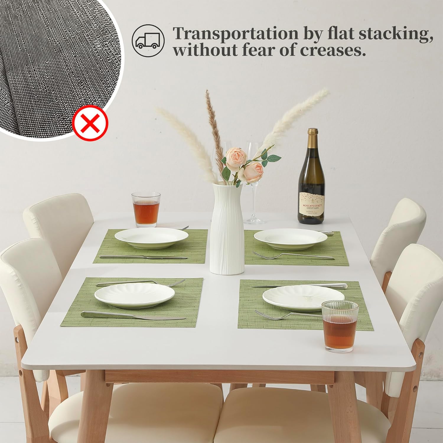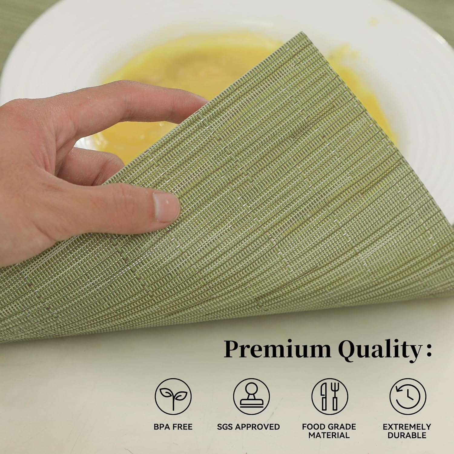 Pea Green Placemats Set of 4 - Heat Resistant Non-Slip Place mats for Dining Table, Washable Durable PVC Vinyl Woven Table Mats