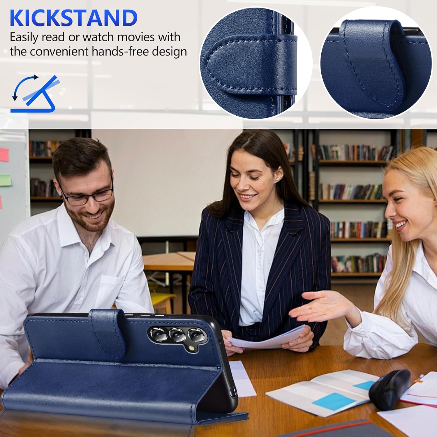 Samsung Galaxy S25 Case for Samsung S25 Wallet Case Shockproof Flip Flap Magnetic Clasp Protective for Galaxy S25 Cover with Cash Credit Card Slots for Samsung S25 (Blue) - Just Closeouts Canada Inc.