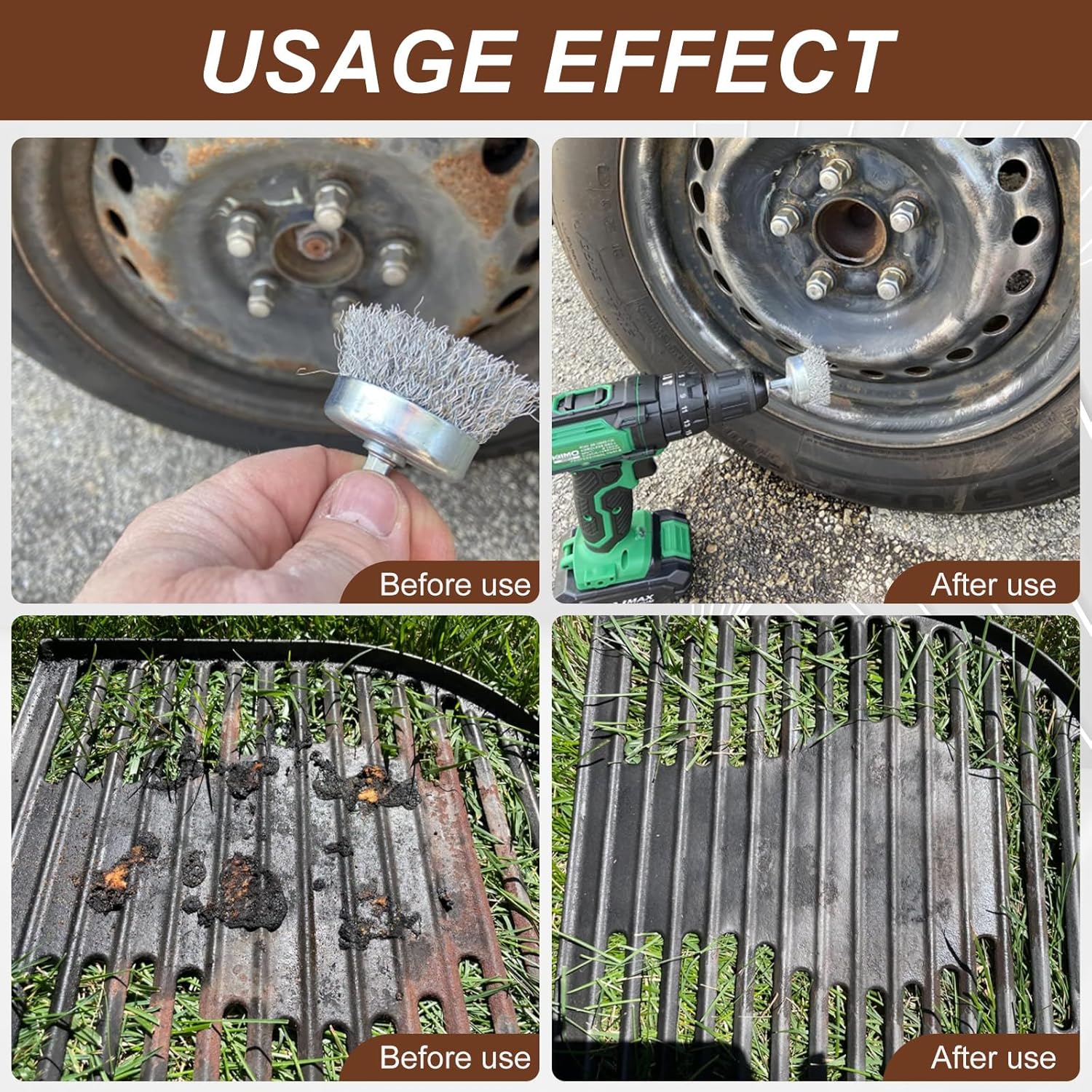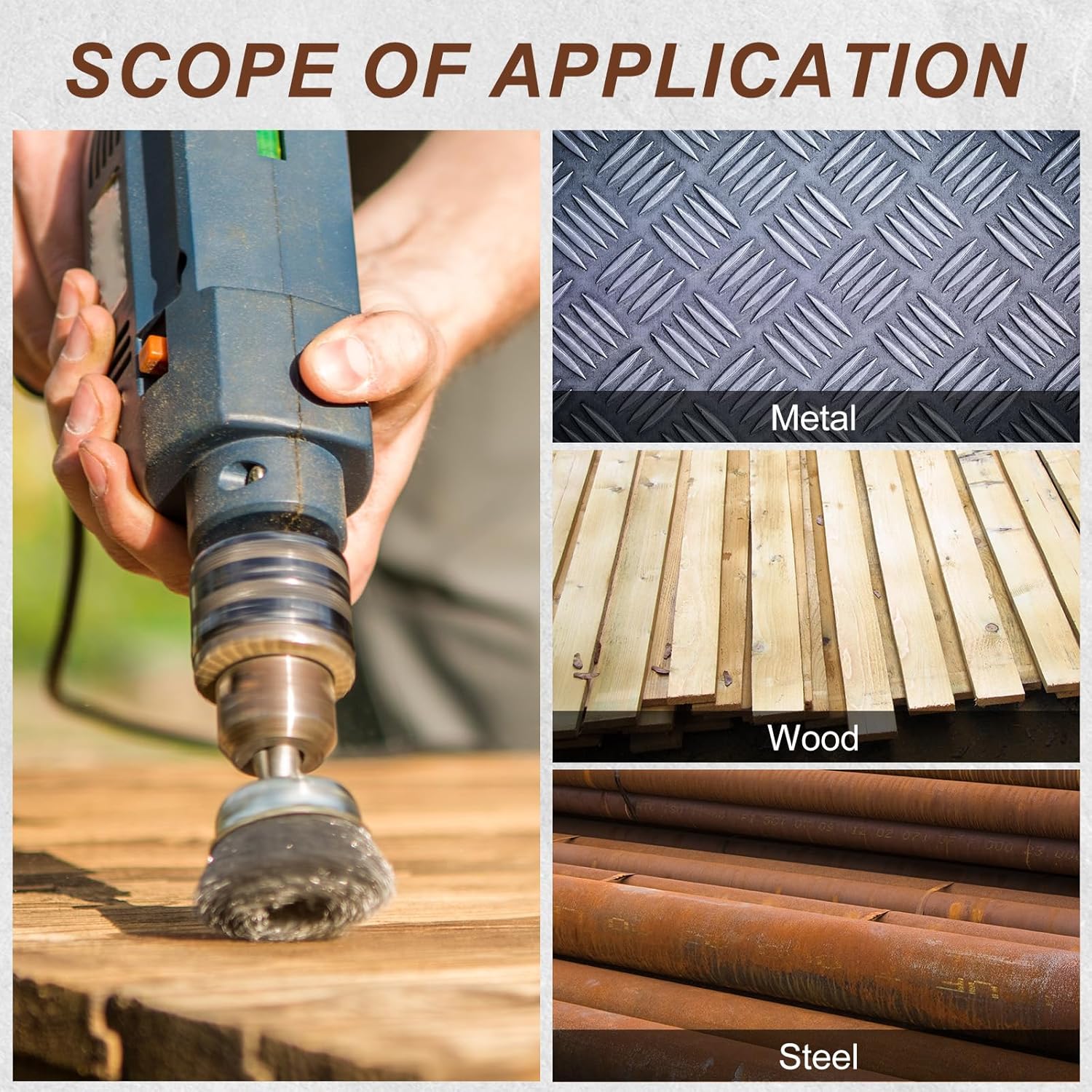 - Suitable For a Variety Of Surfaces: The wire wheel brush set removes rust, paint, dust and burrs from surfaces such as metals and wood, and can also be used to level weld spatter.