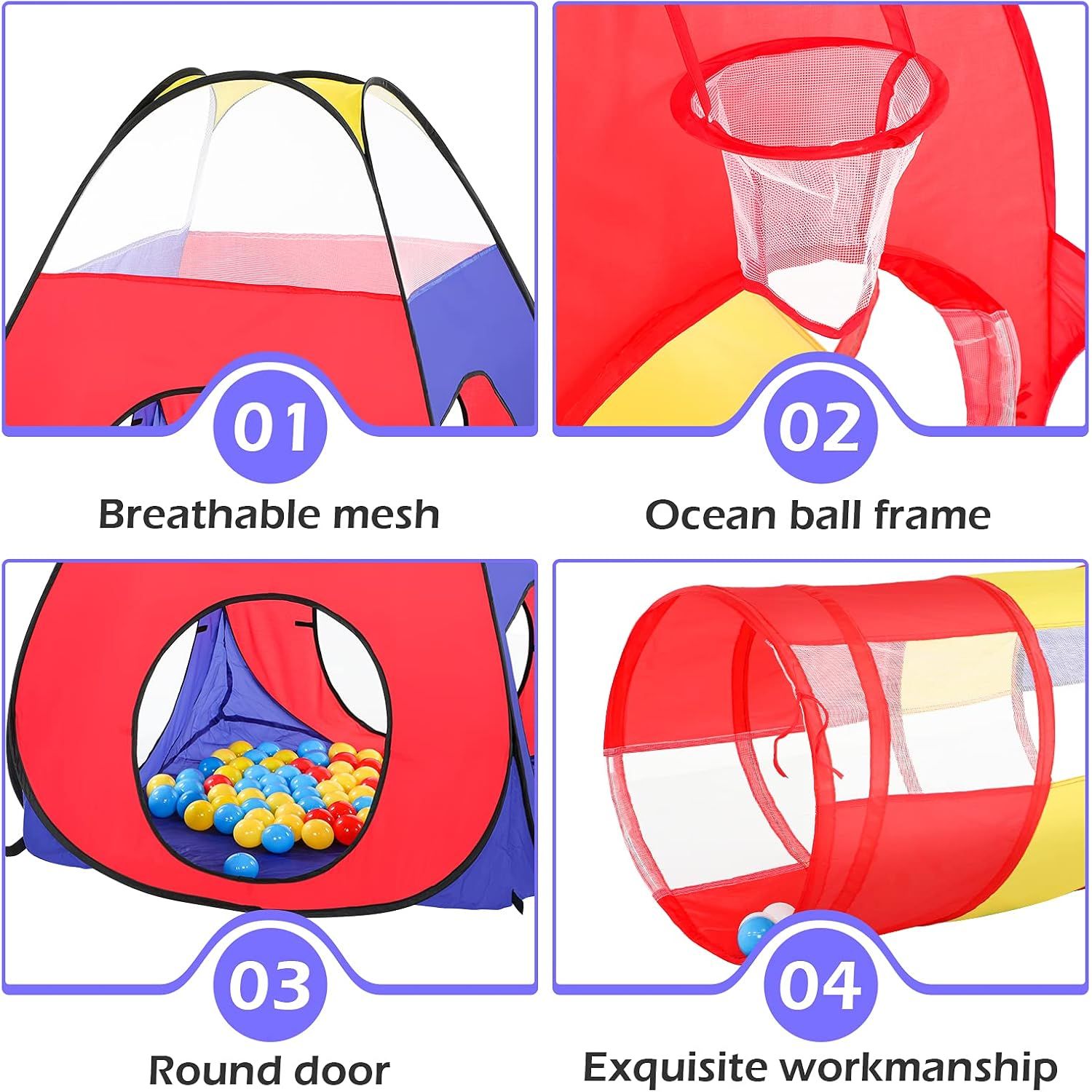 - Excellent Gift for Kids: This baby ball pit consists of play tunnel, ball pit with basketball hoop and kids tent , it's such a great gift idea for birthdays, Christmas, or just a surprise. This 3pc toddlers ball pit with tunnel can provide children with rich entertainment places. Kids can crawl through tunnel and shoot ball in the ball pit