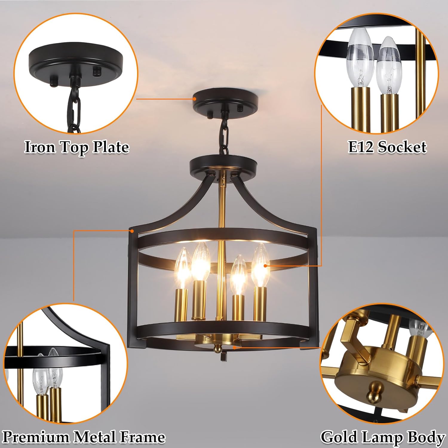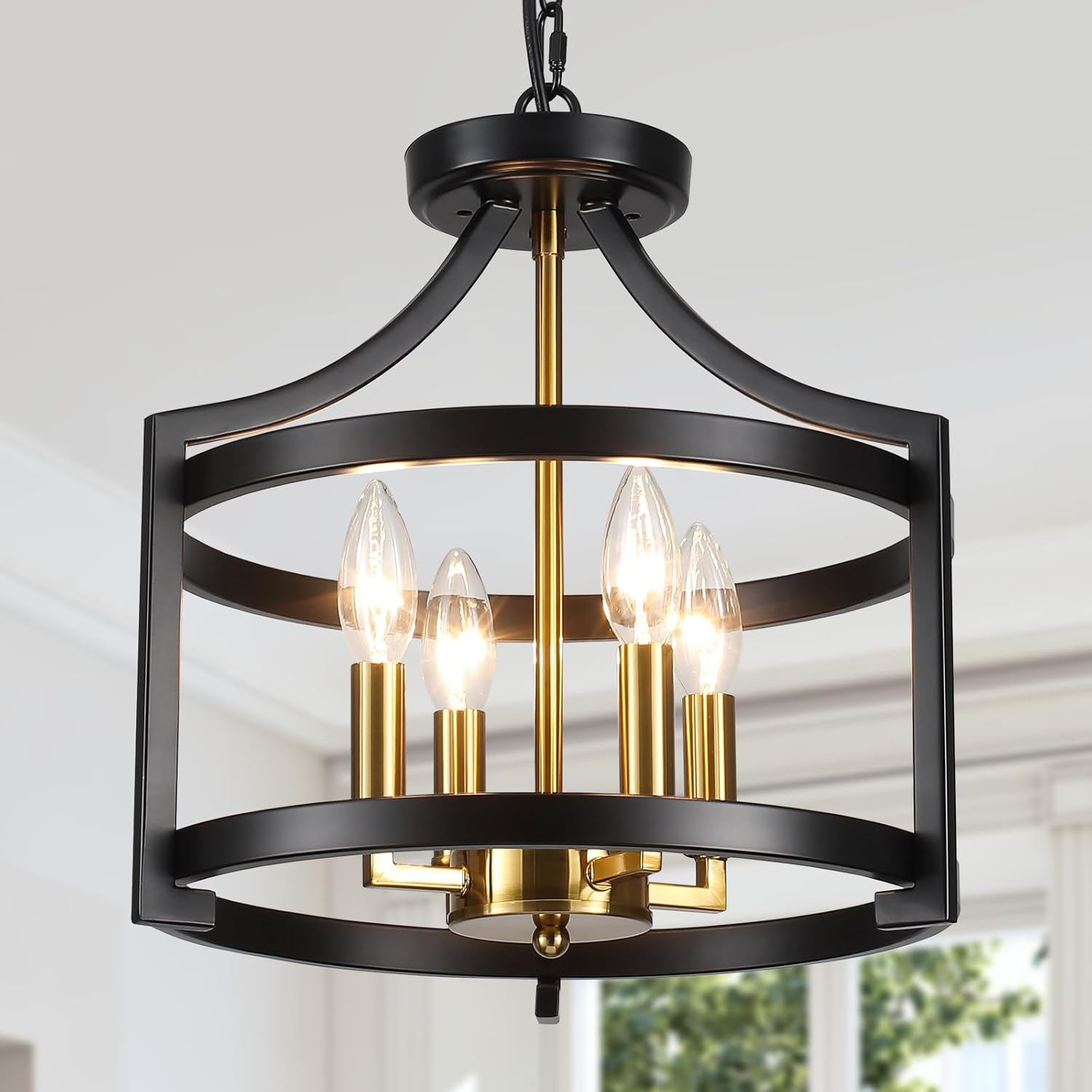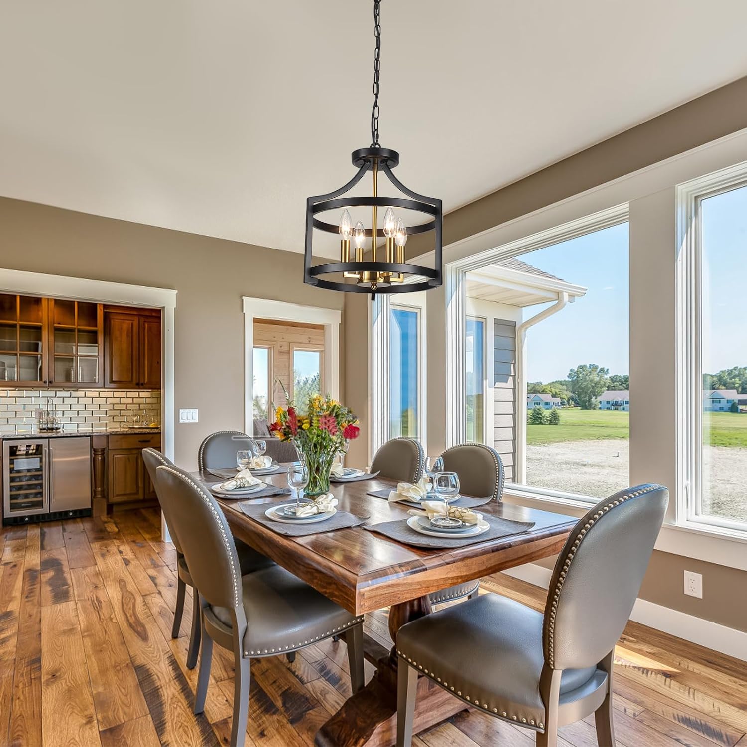 - 【Modern Farmhouse Style】Black and gold chandelier is made of high-quality metal wrought iron with painted in black,a golden body and a hollow designwith a hollow design. The open frame of the kitchen light fixtures ceiling light will bring you good light transmission, adding more modern and farmhouse style to your home.Perfect for kitchen,dining room,restaurant, living room,foyer, and hallway