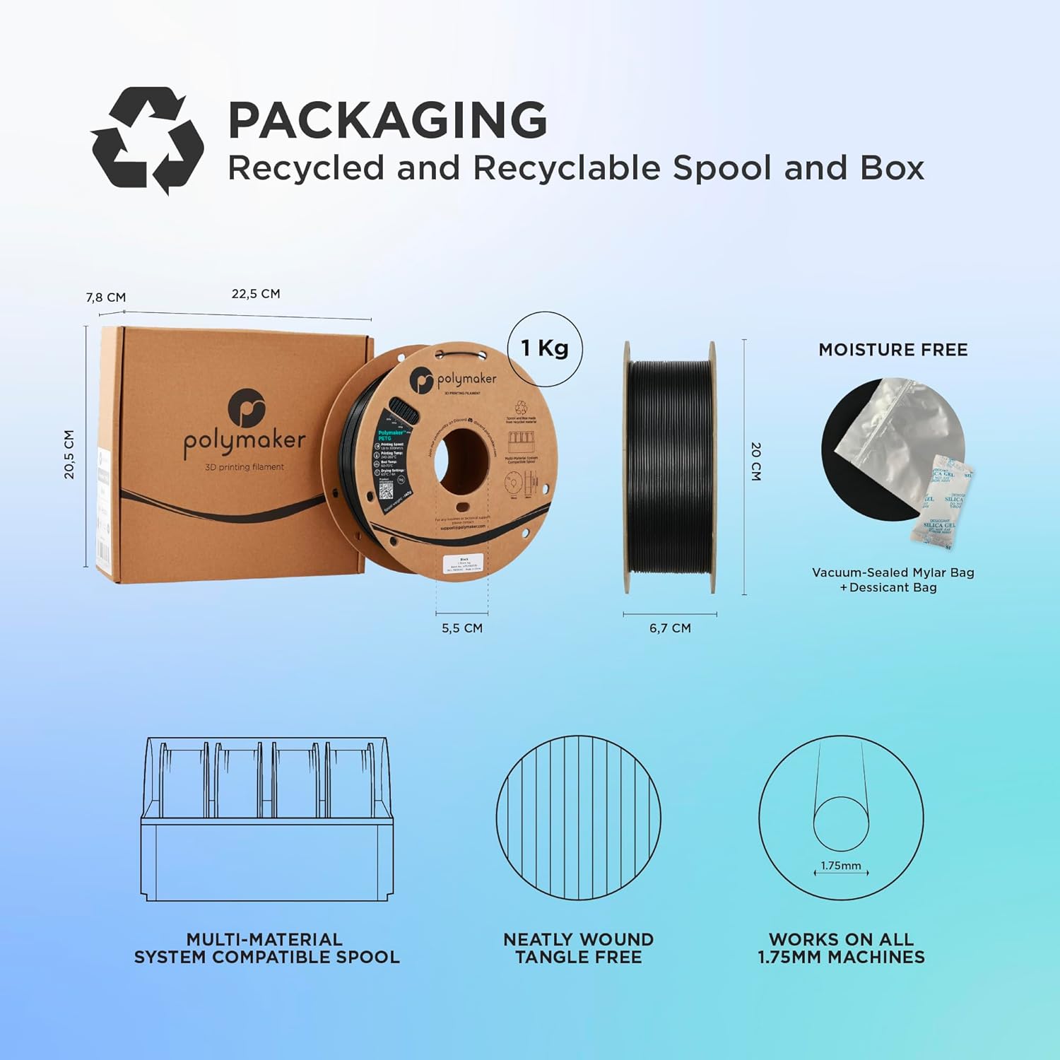- AMS-Ready & Hassle-Free: Neatly wound spool; vacuum-sealed to stay dry; designed to feed smoothly through AMS and multi-material systems without clogging, snapping, or debris.