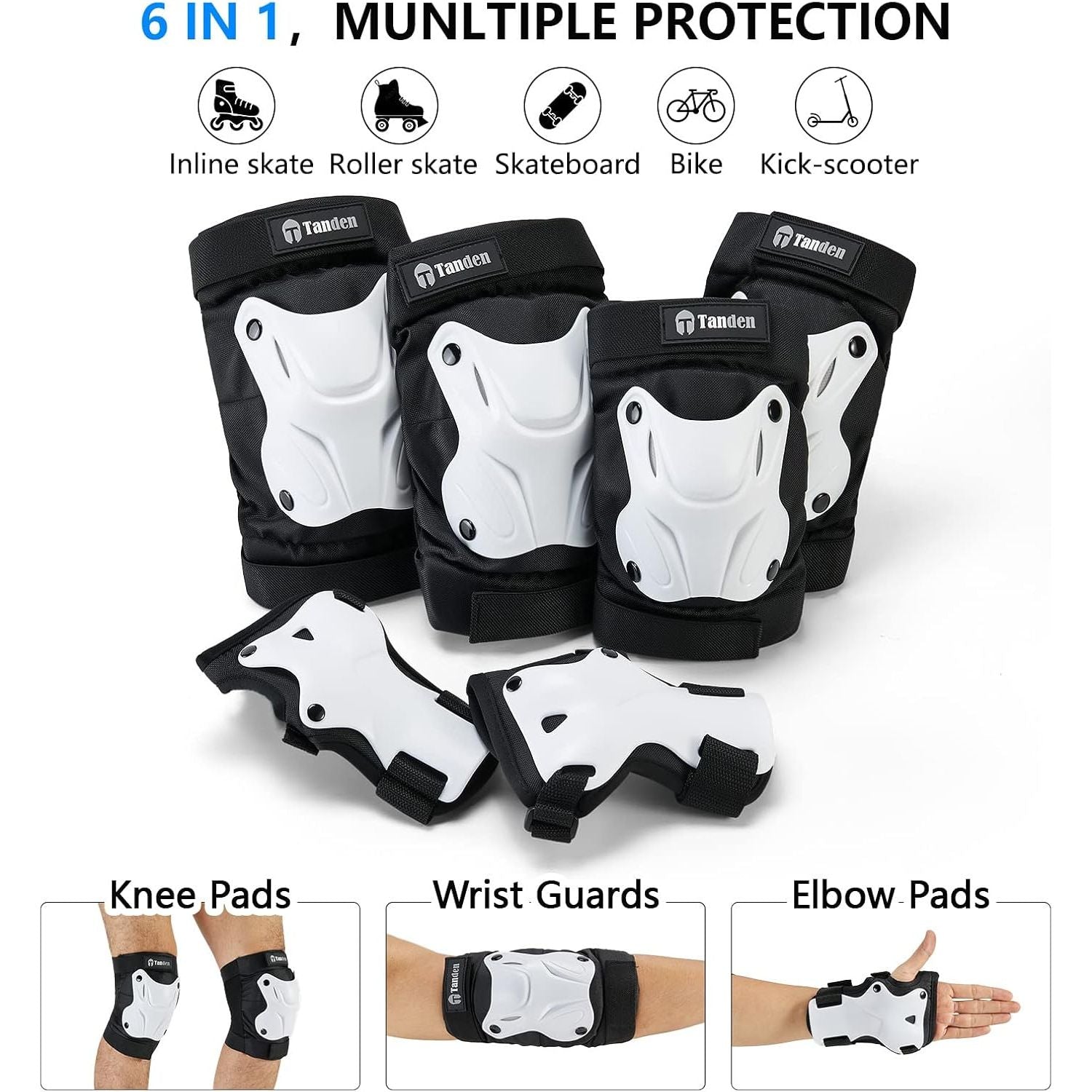 - VERSATILE USE - The protective gear set is great for skateboarding, roller skating, longboarding, cycling, scooters, biking, and more. The set includes 2 elbow pads, 2 knee pads, 2 wrist pads, and a storage bag.