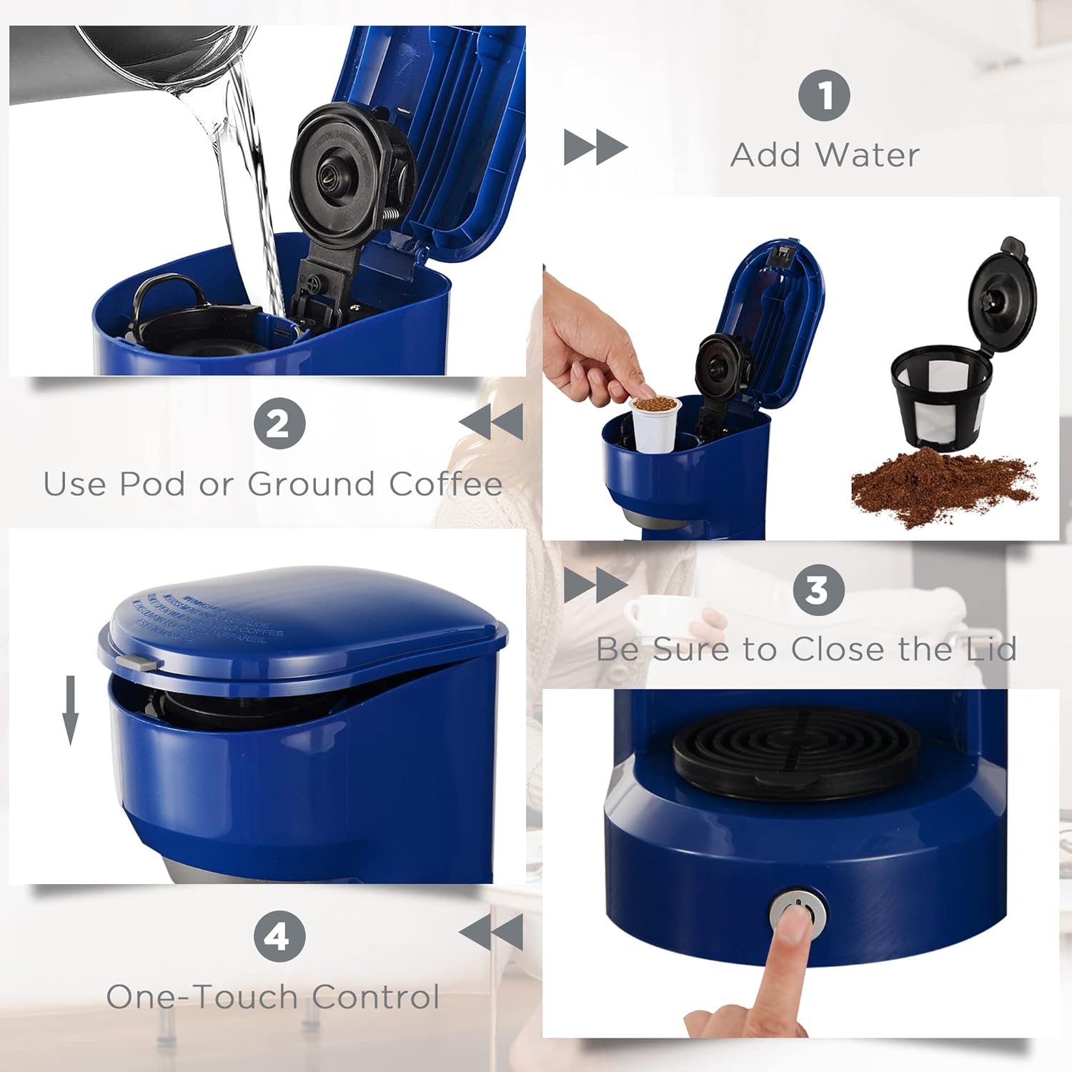 - 【2 WAYS FOR BREWING COFFEE】This single serve coffee maker comes with 2 types of coffee filters, suitable for single-cup coffee & ground coffee.The operation is equally simple and suitable for every situation. Let a cup of fragrant coffee wake up all day.