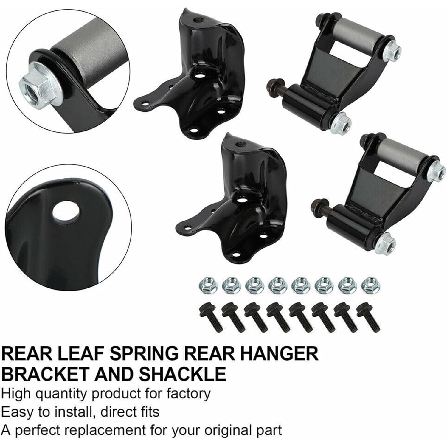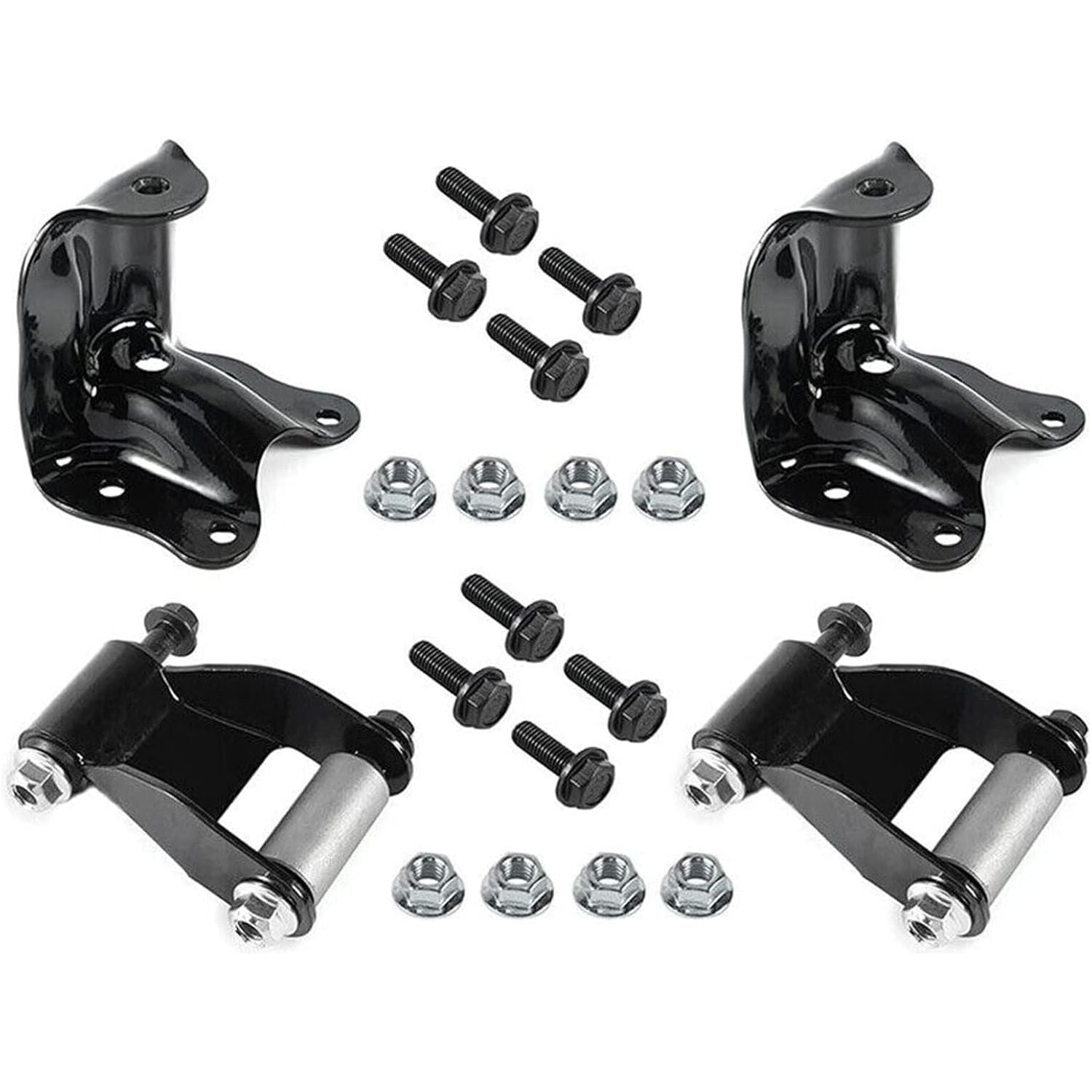 • Package Included: 2x Rear Rearward Leaf Spring Shackle, 2x Rear Rearward Leaf Spring Hanger, and Grade Hanger Mounting Bolts w/ Washers & Nuts!