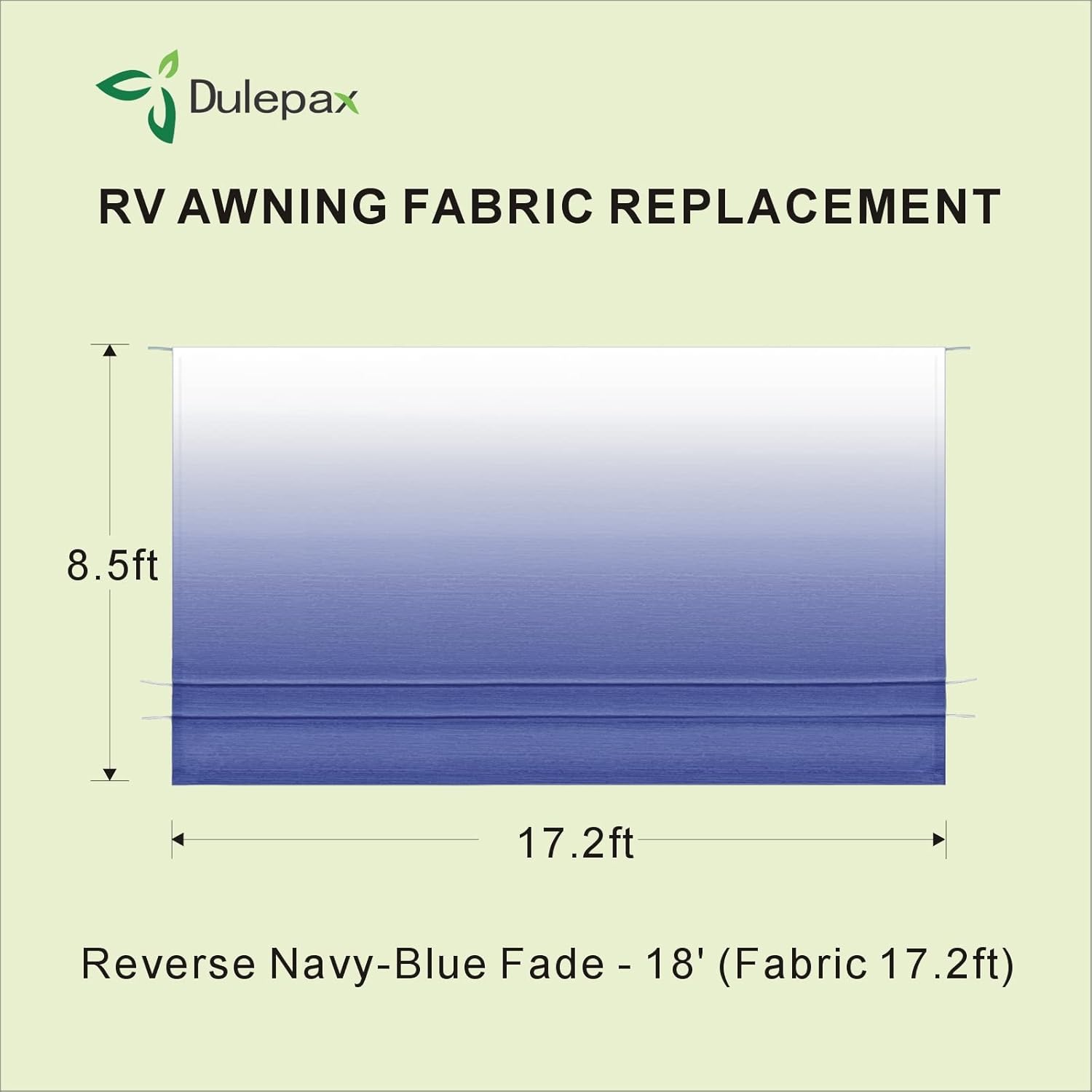 - RV AWNING FABRIC REPLACEMENT: Use Dulepax's high quality vinyl fabric with resistant design.By replacing the RV awning by yourself,You get a premium fabric and it's much cheaper than going to the RV shop to replace it.You will be happy with the awning fabric replacement.