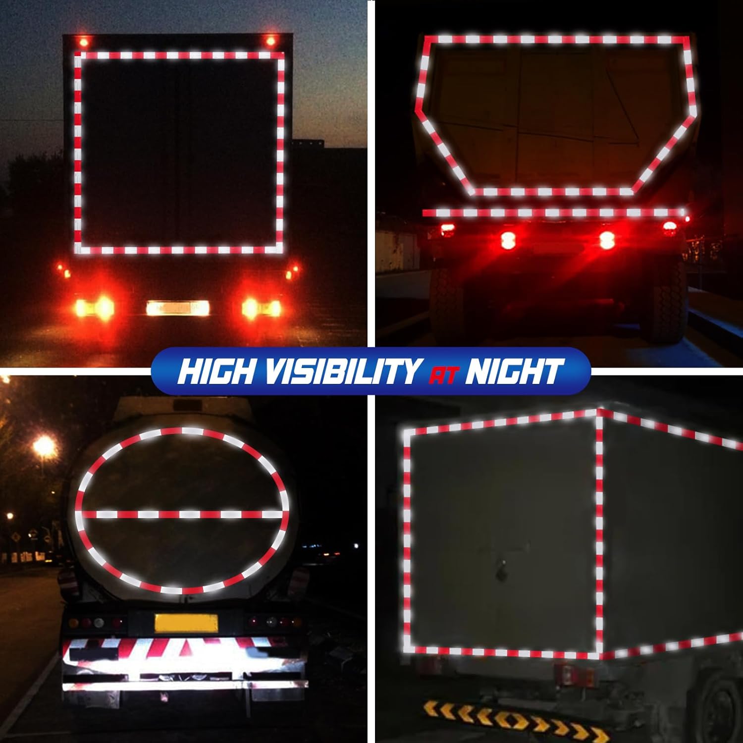 - Highly Reflective Tape - As a roll of reflective safety tape, our conspicuous red and white tape are highly retro-reflective prismatic lenses markings designed to enhance the visibility of the sides and rears of vehicles. It can help to improve the visibility during dawn, daylight, dust and inclement weather.