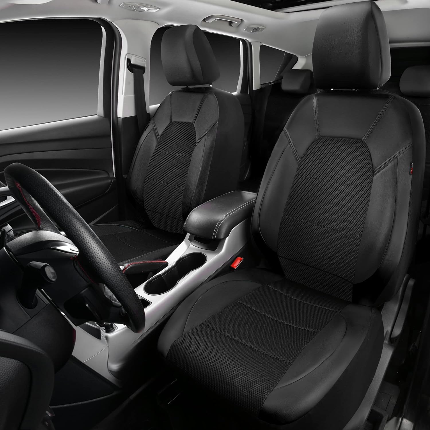 Leather and 3D Air Mesh Universal Fit Car Seat Covers, for Sedans, Trucks, Suvs, Airbag Compatible, Zipper Design and Reserved Opening Holes for Headrest(Full Set, Black and Black) - Just Closeouts Canada Inc.