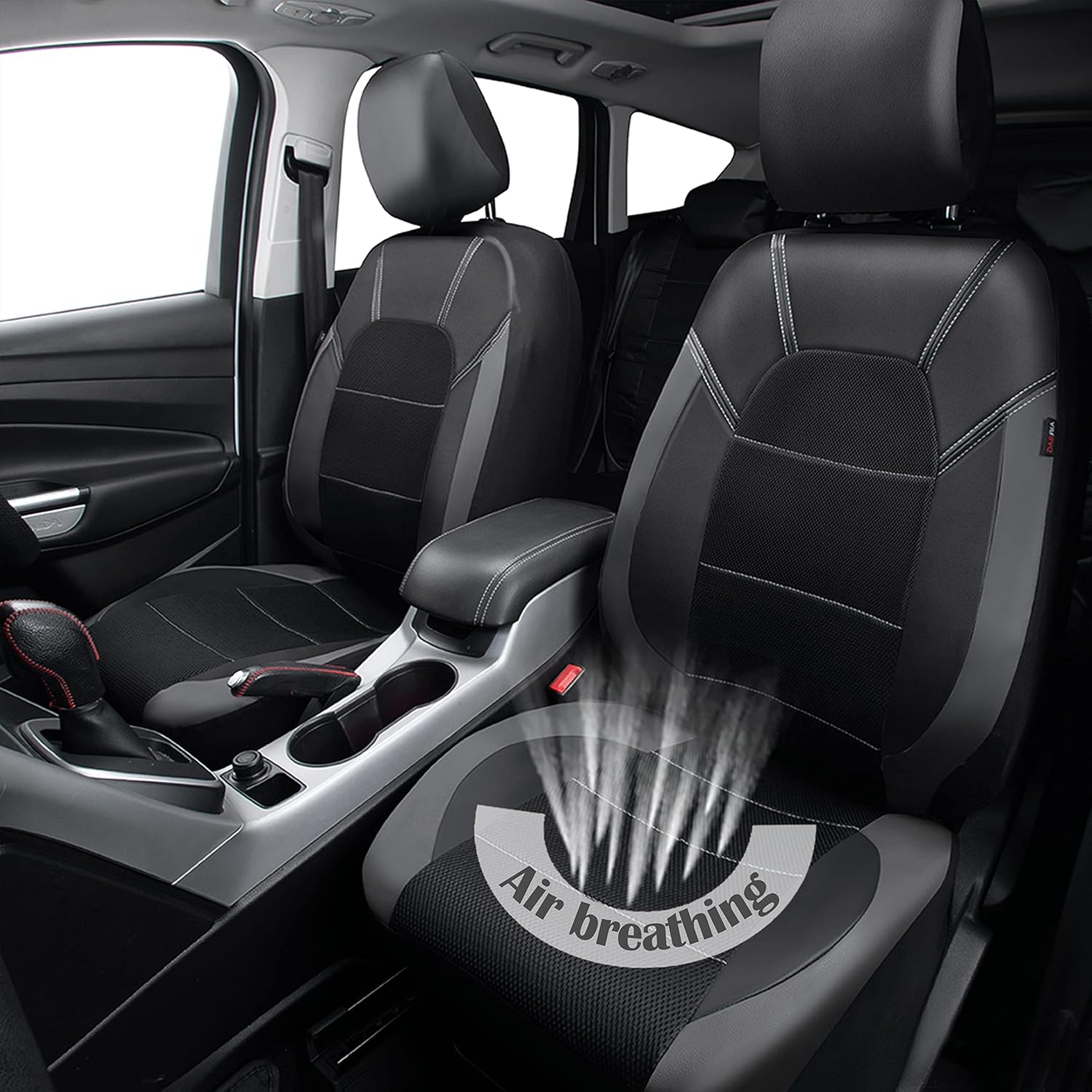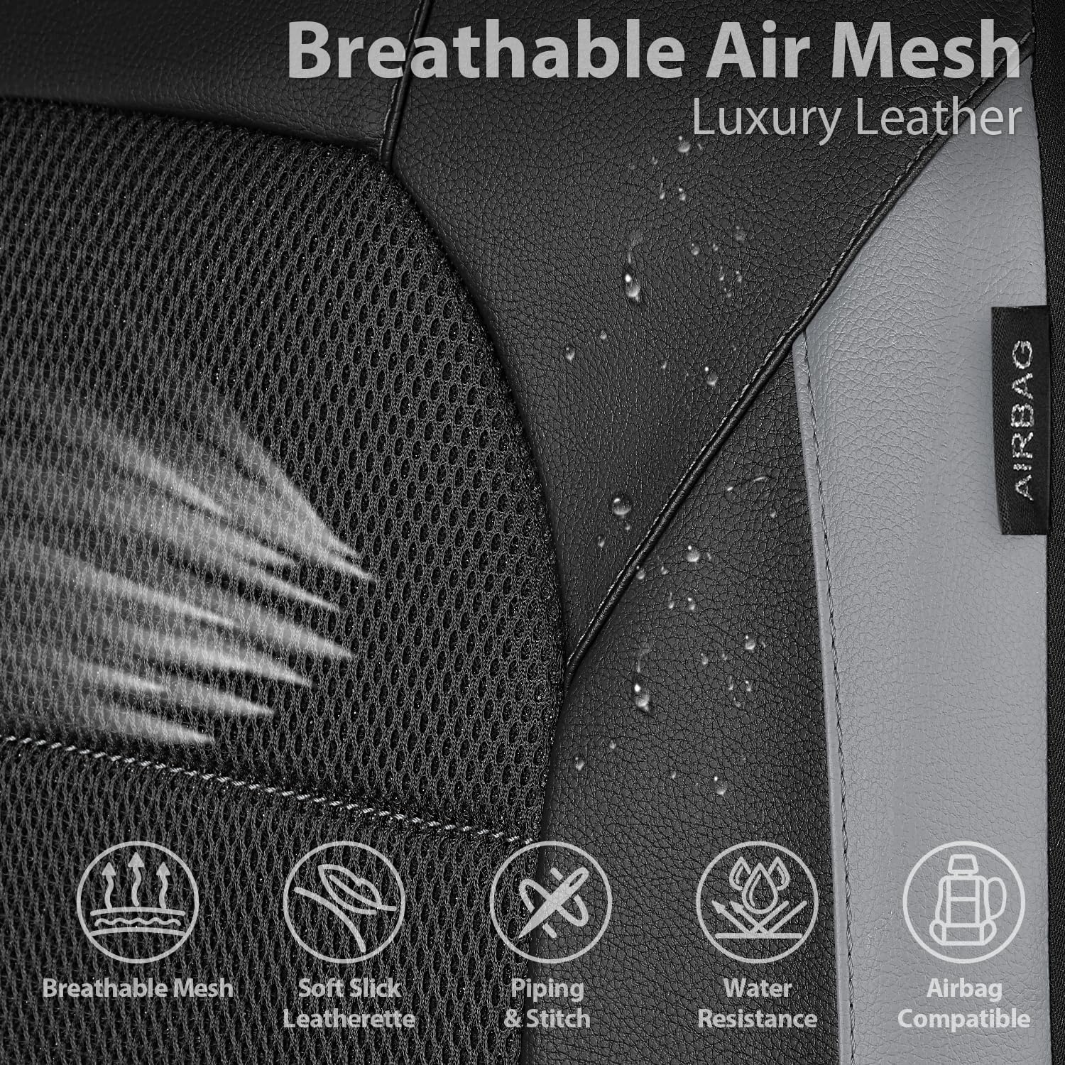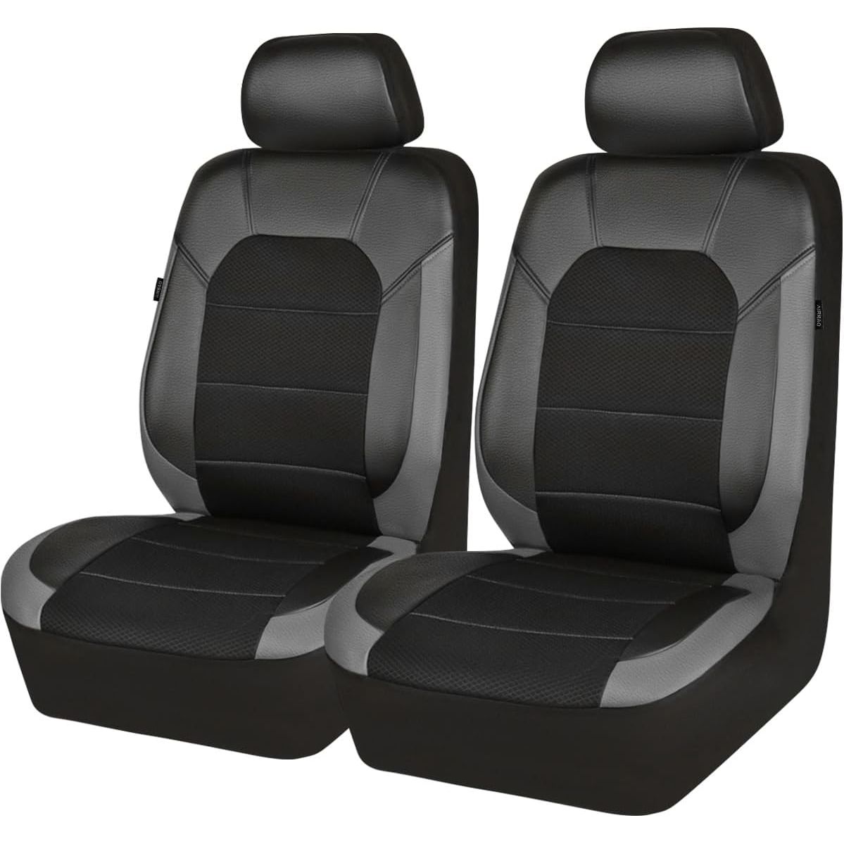 Leather Car Seat Covers Front Seats only, with Air Mesh Front Seat Covers Breathable, Cool Automotive Seat Covers 2 Pack, Universal Fit Most Cars,SUV,Truck,Van Airbag Compatible(Black Gray) - Just Closeouts Canada Inc.