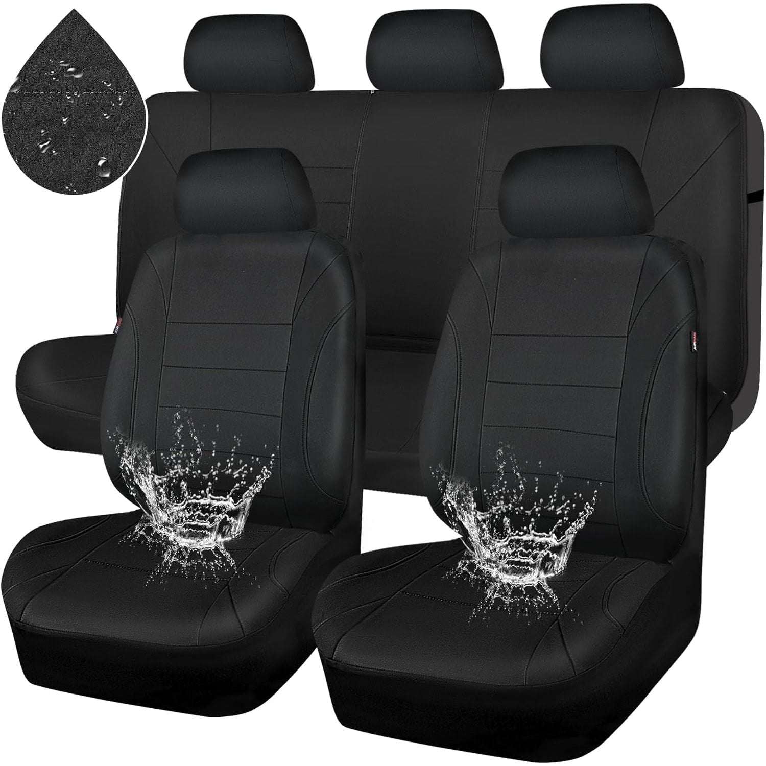Neoprene Waterproof Seat Covers, Universal Fit Black Full Sets, Protective Interior Covers for Auto SUV, Vans, Sedans, Trucks