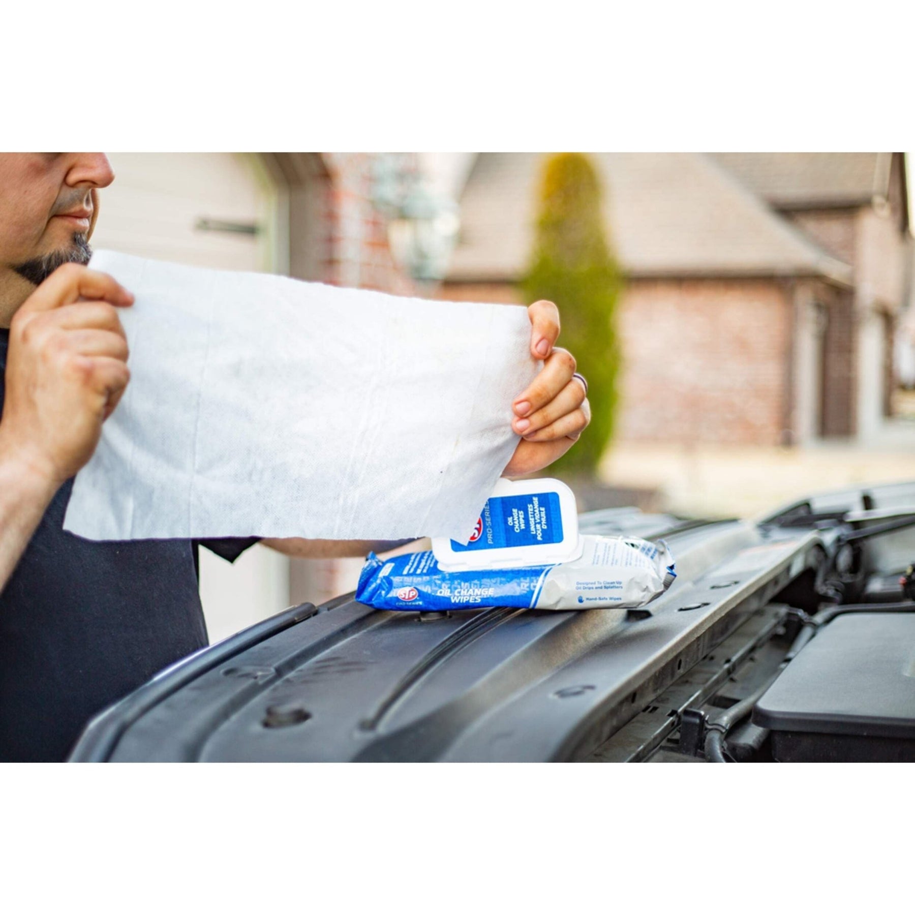 STP (R) Pro-Series Oil Change Wipes are a fast, easy way to clean up oil, grease and grime on your hands, tools and vehicle undercarriage during and after an oil change. These oversized, super-strong, mechanic-grade disposable wipes are a great alternative for messy rags and shop towels. Each wipe absorbs up to 40 percent more motor oil than leading degreasing wipes (1). Infused with Aloe and Vitamin E, these wipes dissolve oil and grease without the use of harsh chemicals. They feature a pleasant citrus scent that leaves your hands smelling fresh. Each package of car oil change wipes has a moisture-lock lid that helps keep the wipes from drying out. Perfect for using after performing an automotive oil change or other car care tasks, these oil change wipes are great for cleaning up your hands, vehicle undercarriage and oil change tools. One package contains 30 multi purpose cleaner wipes. Oil changes can be messy and dirty, but with STP (R) Oil Change Wipes, cleaning up oil, grease and grime is fast, easy and safe for your hands. For over 60 years, STP (R) has been one of the most trusted names in automotive care with car cleaning supplies that are essential tools in your car maintenance routine.(1) Leading brand based on NPD TTL Mkt, 52 weeks ending Nov 2020