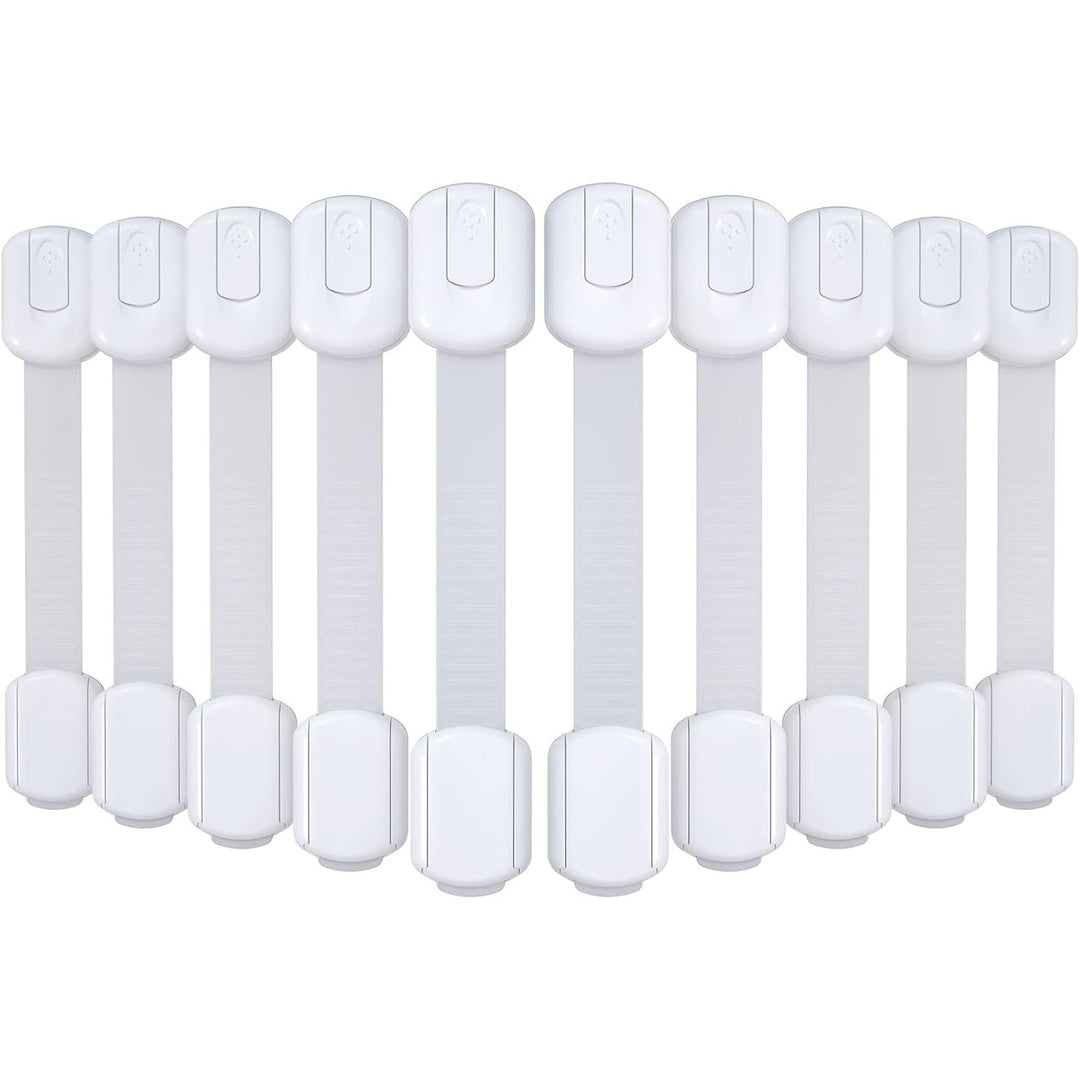 4our Kiddies 10 Pack Baby Proof Cabinet Locks, Child Safety Drawer Locks with 6 Extra 3M Adhesives, Childproof Cabinet Strap Locks for Drawers, Cupboards, Refrigerators, Adjustable No Drilling