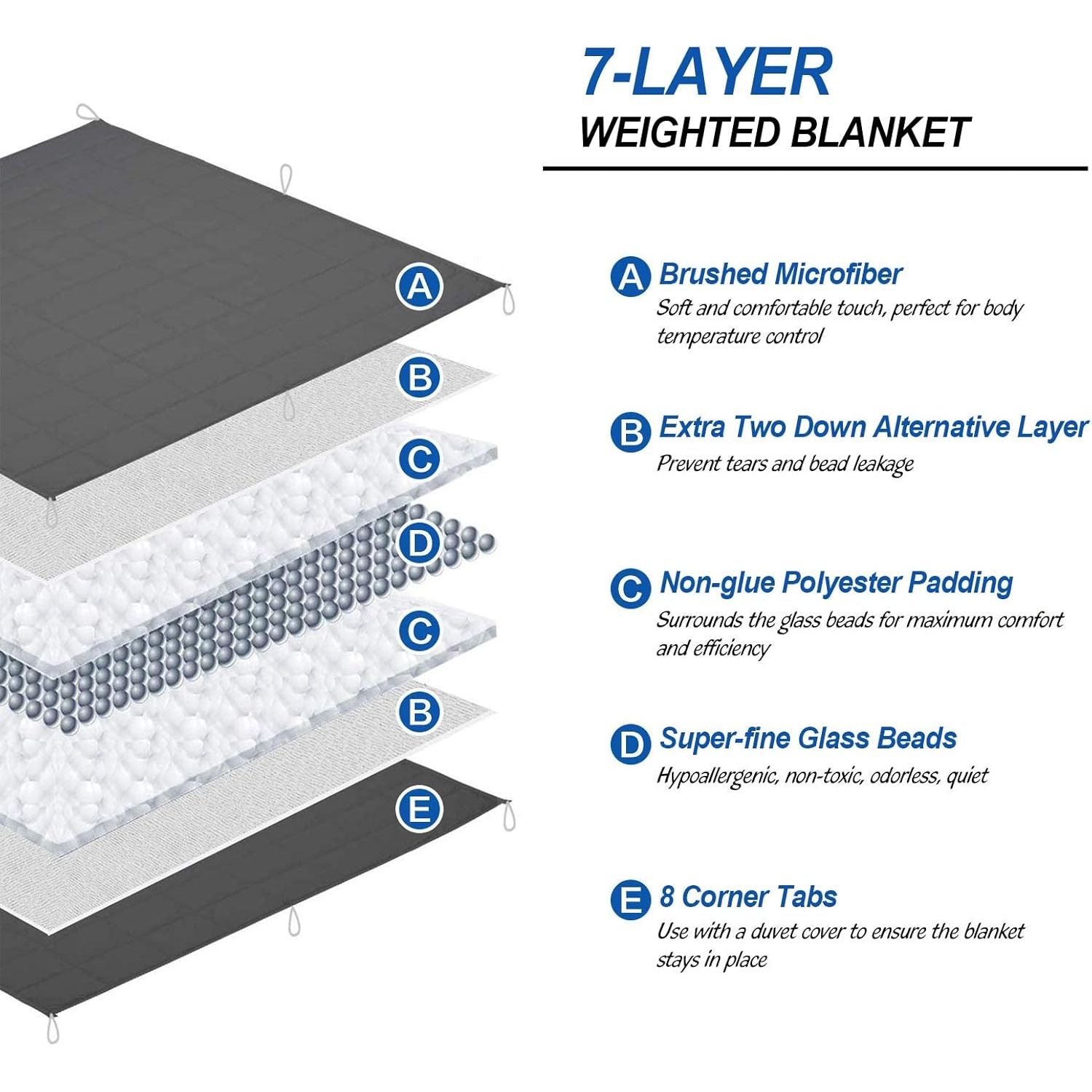 • SMOOTH and SLIENT FINE GLASS BEADS FILLING--The blanket is filled with glass beads and padded with two layers of cotton fabric for extra padding and prevent bead leakage. Additional 8 ties at the corners also keep the beads evenly dispersed, which allows the blanket to maintain a full shape