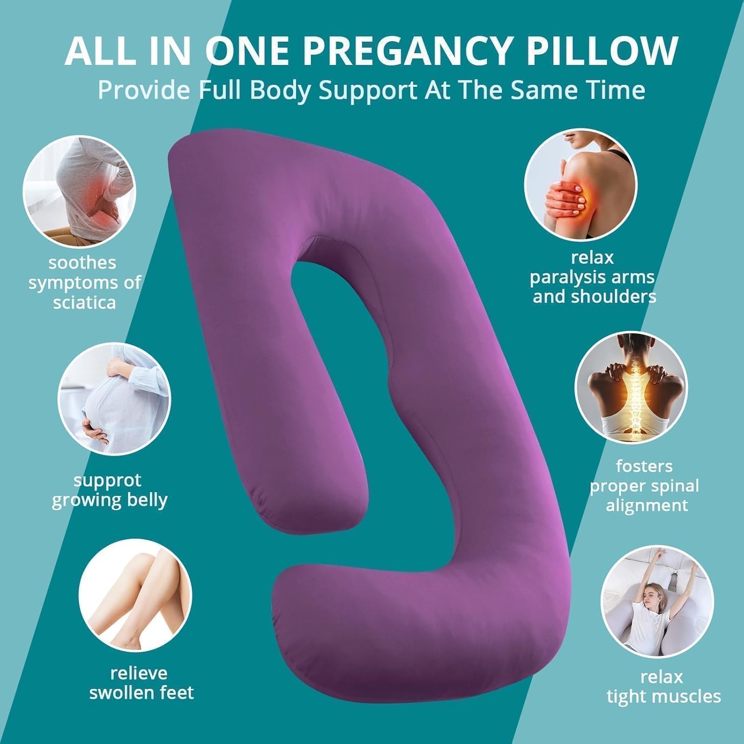 Sasttie Pregnancy Pillows for Sleeping, U Shaped Cooling Full Body Pillow, Pregnancy and Side Sleeper Must Haves, Maternity Pillow for Pregnant Women with Removable Cover, Purple - Just Closeouts Canada Inc.