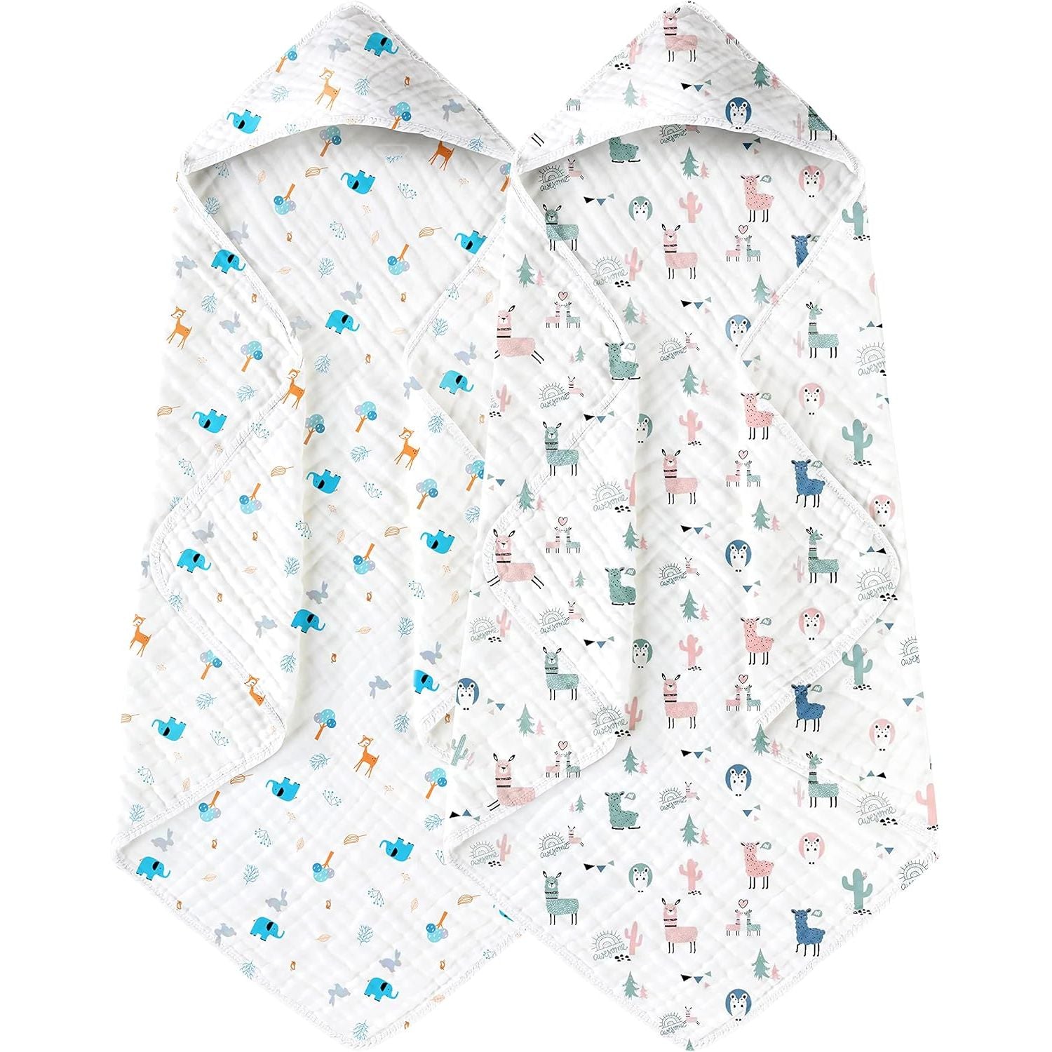 Yoofoss Hooded Baby Towels for Newborn 2 Pack 100% Muslin Cotton Baby Bath Towel with Hood for Babies, Infant, Toddler and Kids, Large 32x32Inch, Soft and Absorbent Newborn Essential - Just Closeouts Canada Inc.