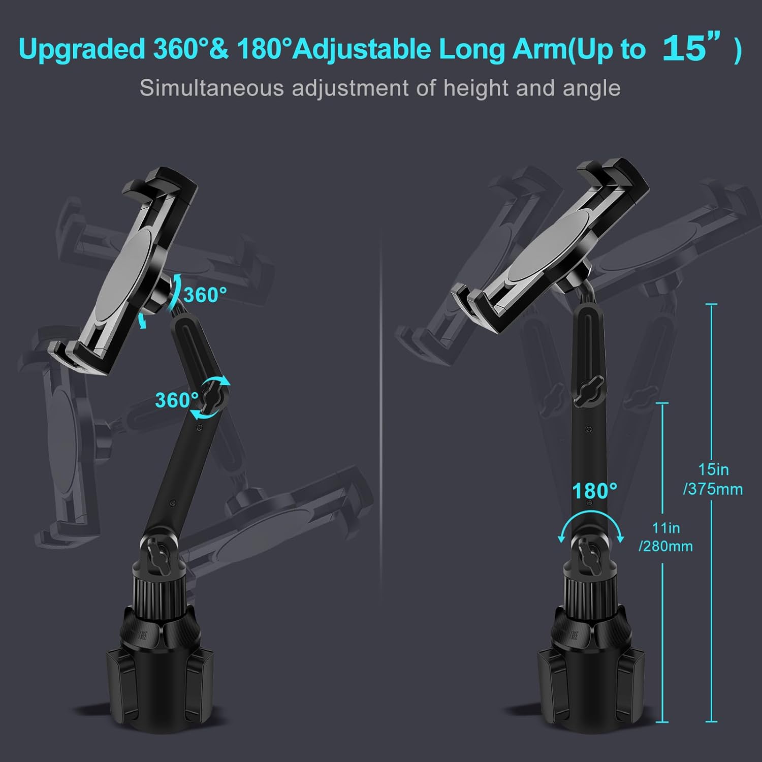 - 【UPGRADED EXPANDABLE SOLID BASE】The upgraded adjustable base of this cup holder tablet mount can be extended from 2.36 to 3.9 inches (60-95mm), adapts to most round cup holders. Meanwhile, the heavy-duty base is designed with three non-slip silicone extensions, forming a triangular stable structure, the cup tablet holder will be securely locked in your cup holder, makes it easy for map-viewing, phone calls and hassle-free charging, suitable for most cars, vehicles, SUV, trucks, boats, etc.