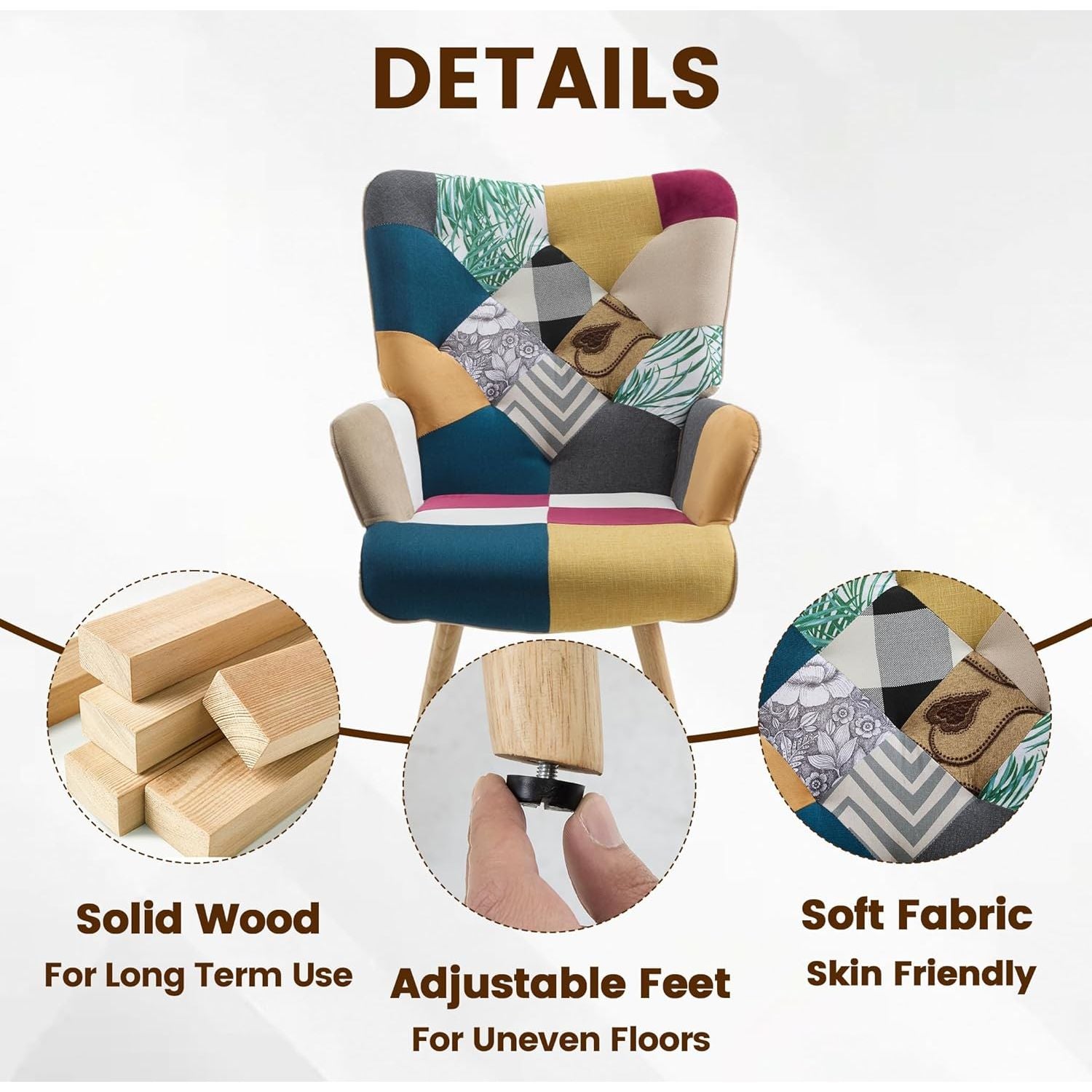 • 【UNIQUE PATCHWORK STYLE】 Unique patchwork design of modern upholstery chair can be blended perfectly with mid-century modern interiors, ideal for livingroom, bedroom or reading room