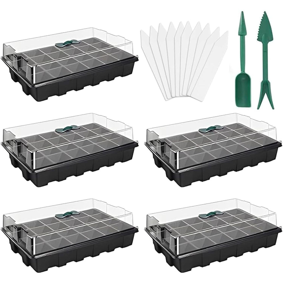 ANGTUO 5 Pack Seed Starter Tray with Dome Reusable 120cell Plant Germination Trays Indoor Propagation Planting Tray Seed Starter Kit Seedling Starter Trays (24 Cells per Tray)