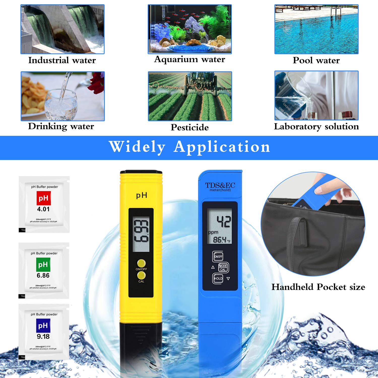 • Widely application - these meters are designed small and convenient. PH meter and TD&EC meter can test pH balance, ideal for testing drinking water, swimming pools, aquarium, spas, hydroponics, food and more. Soil tester is applicable to plants, garden, lawn and farm such as rice/vegetables/flowers etc.