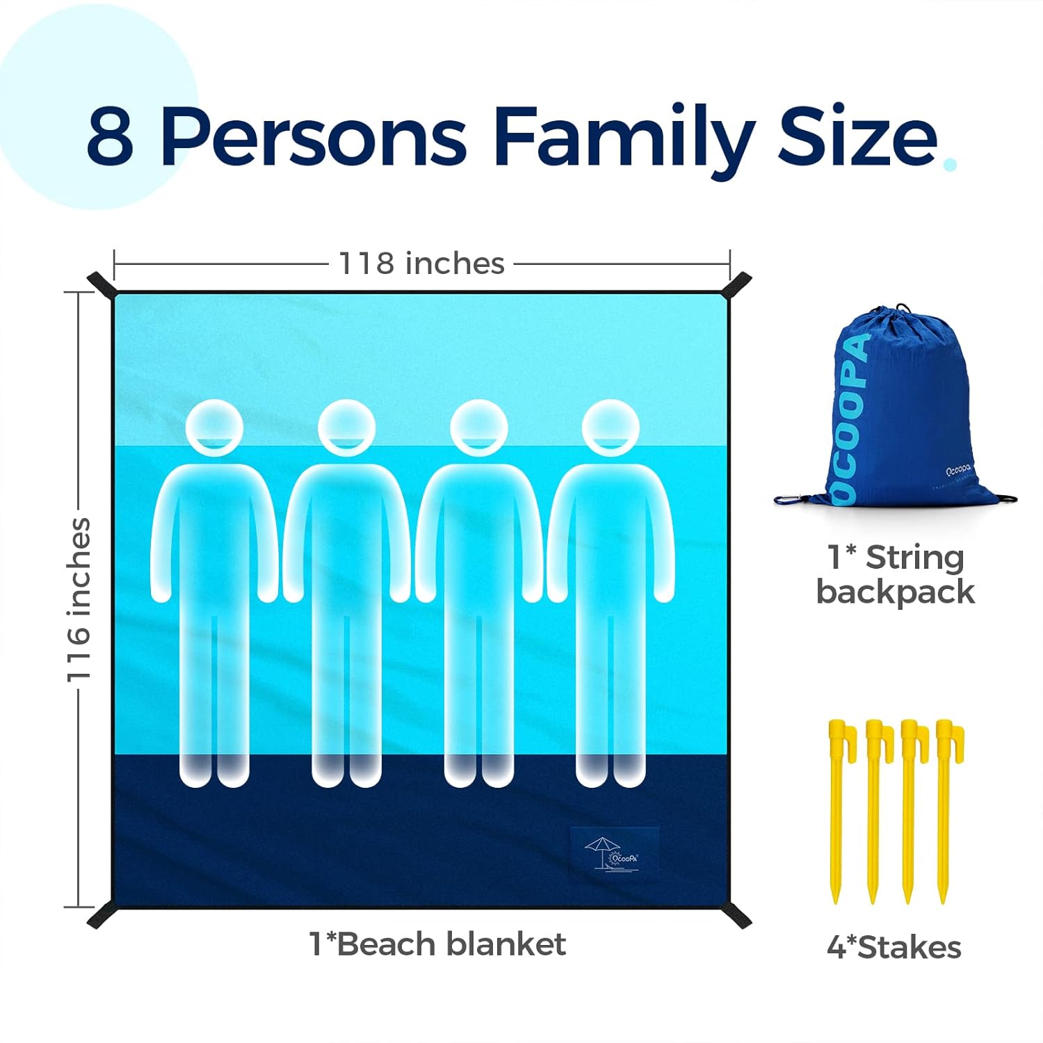 - 🌴 More Space, Less Weight. XXL Oversized blanket, designed for family trip. Provides space to up to 8 persons, measures at 10x9.2ft, extra large family size offers a great space to enjoy the sun with your friends. Lightweight, at 1.5 pounds, ultra compact, easily folded in the included backpack.