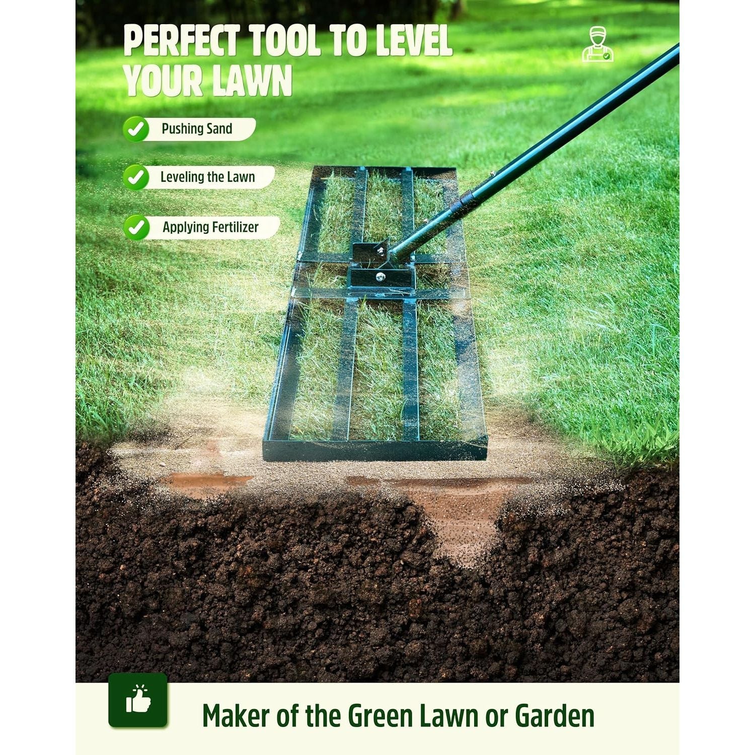 - Widely Application: Perfect for Kentucky Bluegrass, Bermuda, Ryegrass in garden, farm, lawn, yard, football course, golf course and pasture to flatten and compost with soil, topsoil, dirt, sand.