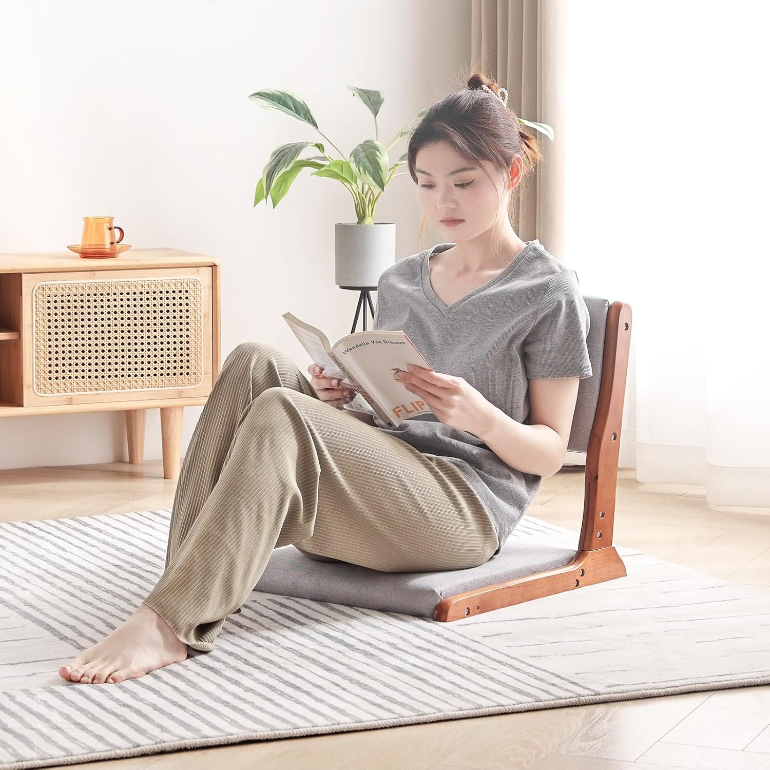 Foldable Tatami Chair, Japanese floor Chair, Wood Legless Back Rest Chair with Cushion, Accent Meditation Floor Chair Bay Window, Walnut Grey - Just Closeouts Canada Inc.