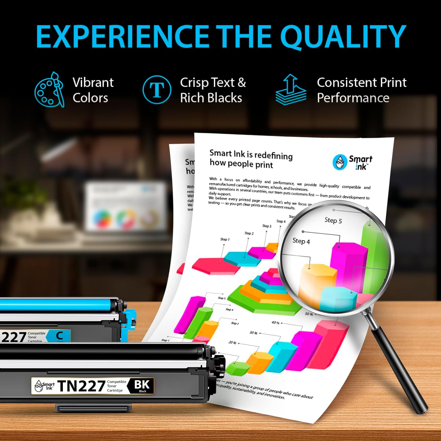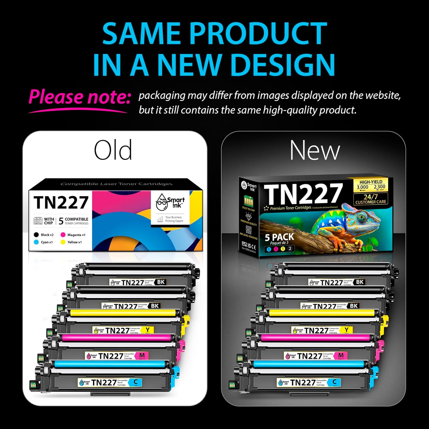 Smart Ink Compatible TN227 High Yield Toner Cartridge 5 Pack (2BK/C/M/Y) Replacement for Brother TN-227 TN-223 TN223bk TN227bk to use with MFC-L3770CDW HL-L3290CDW HL-L3270CDW MFC-L3710CW HL-L3210CW