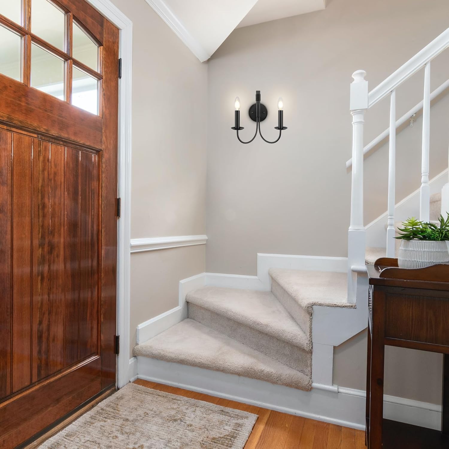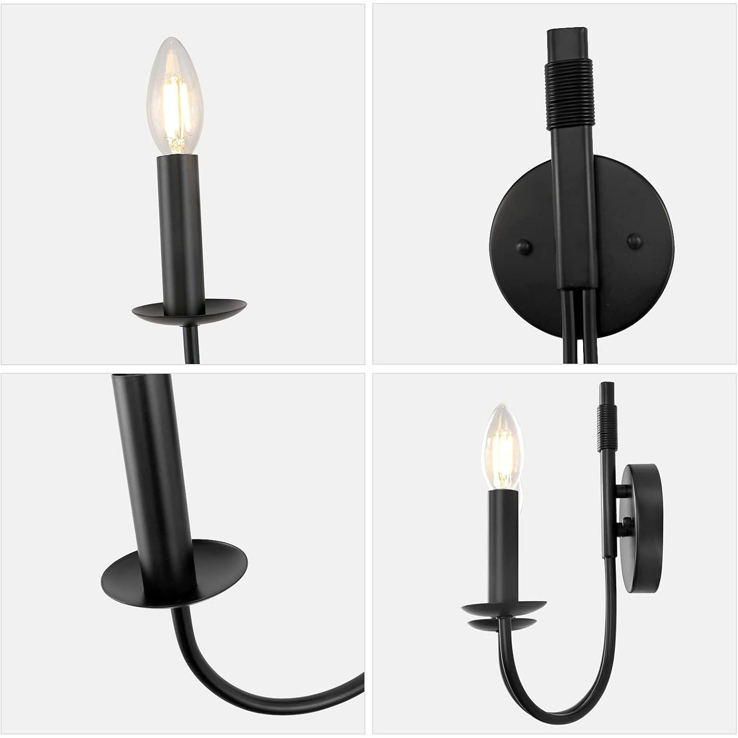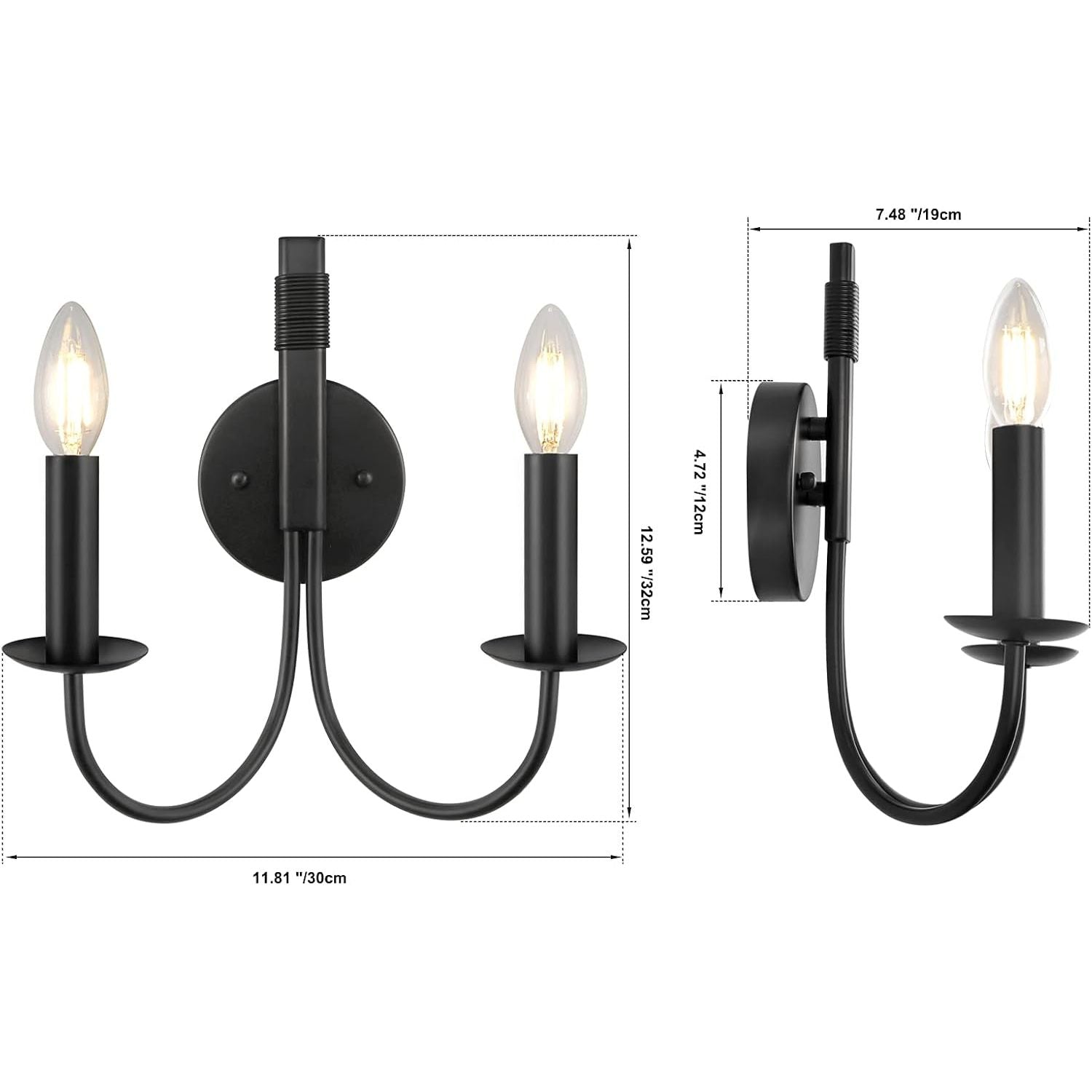 - Classic Candle Wall Sconce: Inspired by antique lighting, this 2-lights black wall sconce showcases classic rustic style with a modern update. A circular backplate supports a pair of curved arms topped by candle-style sockets for an elegant look, lending a touch of traditionalism to any space.