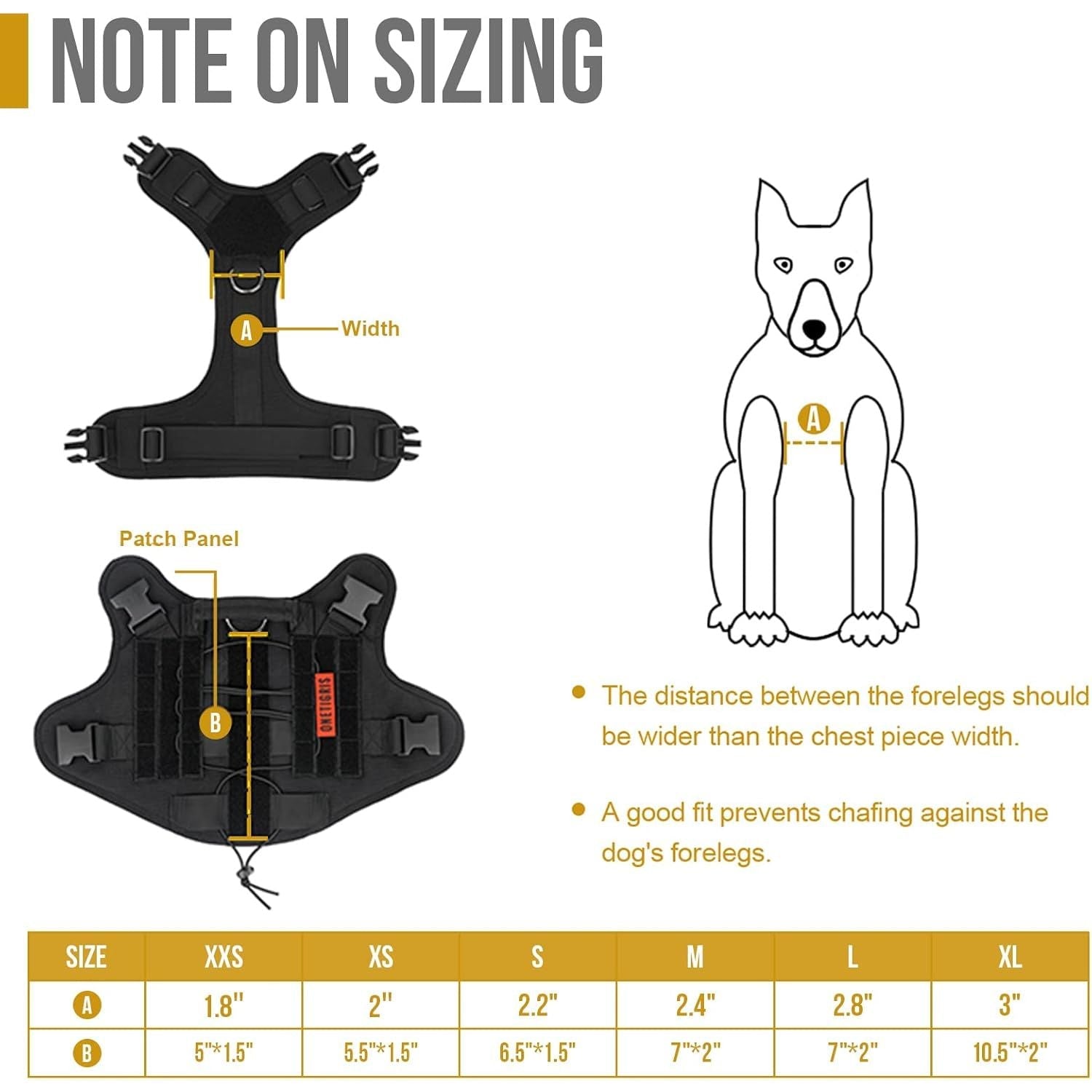 - MOLLE System : Each side features two MOLLE straps as well as hoop & loop strips panel to easily attach molle pouches or ID panels; OneTigris harness is not designed to bear heavy weights and we advise against relying solely on the grab handle to carry your dog