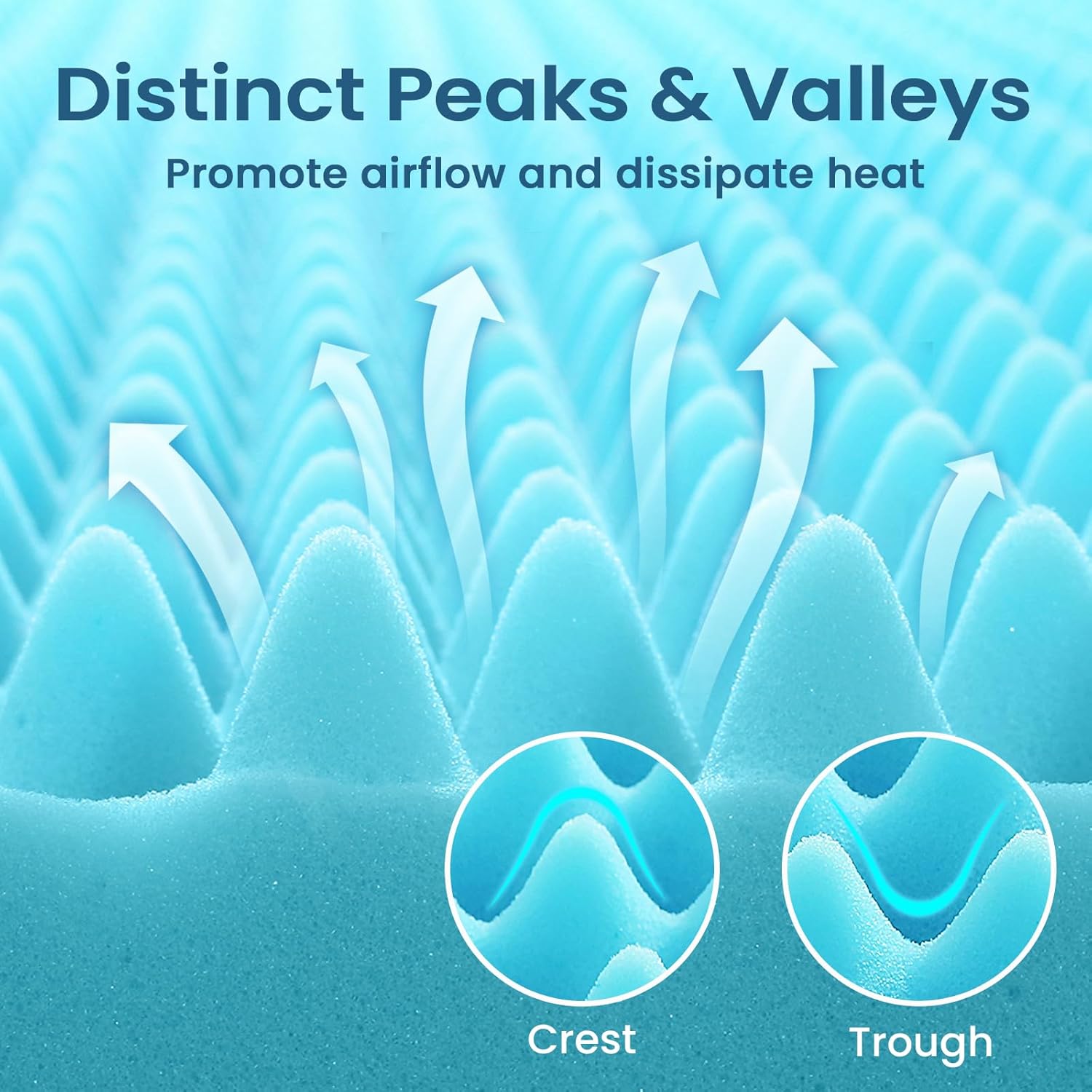 - Egg Crate Design: Our cooling mattress topper features a ventilated design that allows for increased airflow, keeping you cool all night long. Our queen size mattress topper is quilted with gel-infused which adapts to your body's temperature