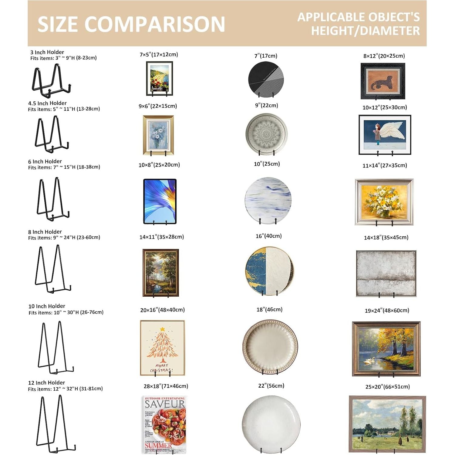 - Wider Applications - Very sturdy and attractive plate display stands that balance larger and taller items. Excellent size for thicker and heavier decorative plates, portraits, framed prints, wood panels, glass art piece, stoneware ornaments, meteorite slices, canvas paintings and more.