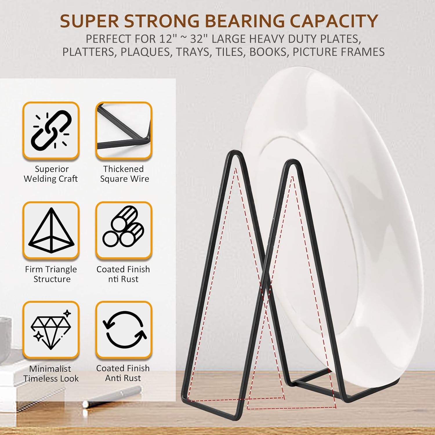 - Extra Large Plate Stand - This 12 inch metal stand is designed for oversized and excessively heavy objects ranging from 12" to 32" in size, such as thick and heavy duty plates, platters, saucers, frames, plaques, tiles, boards, signs and even the irregular artworks.