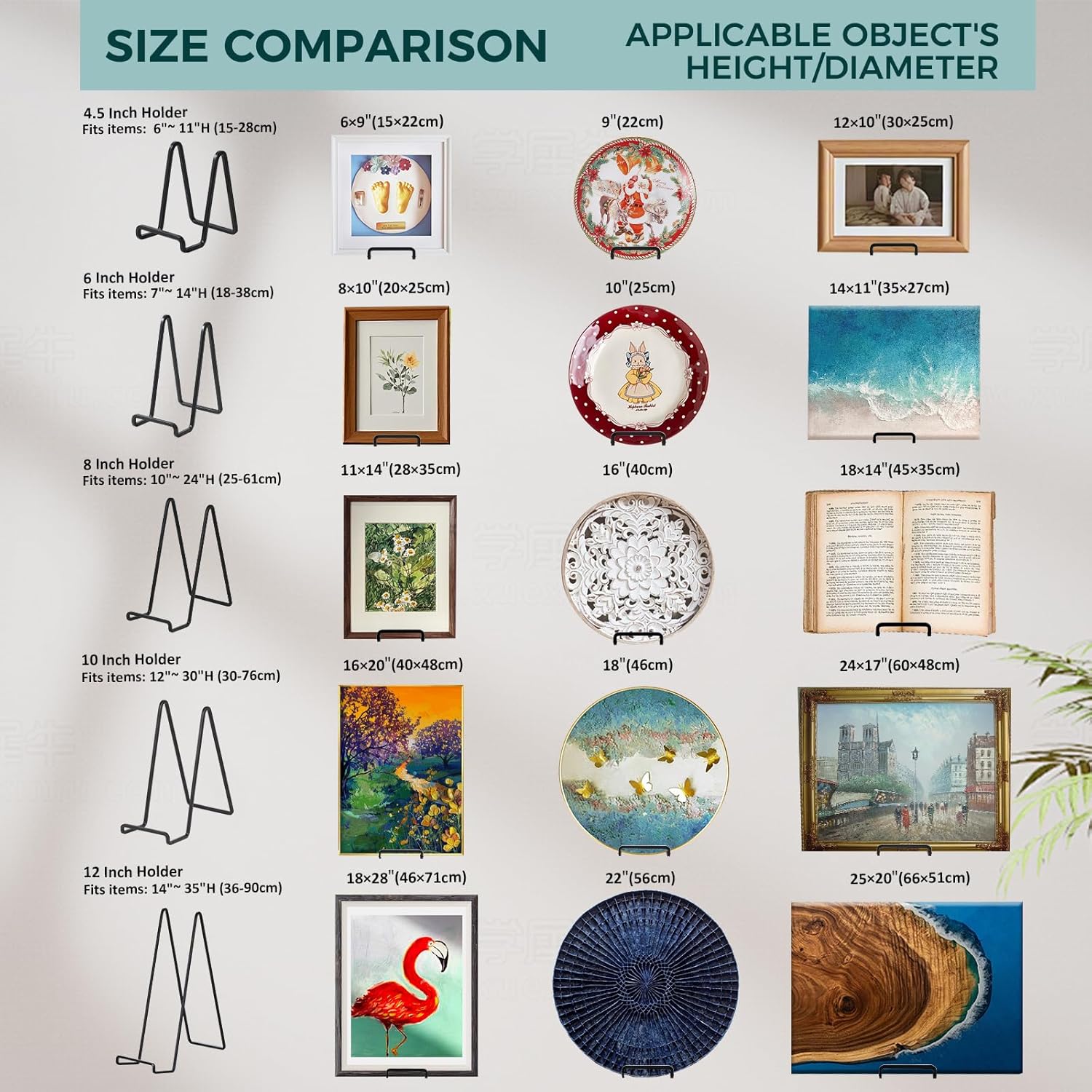 • Wide Applications - This metal stand with solid construction and pretty appearance is practical, durable and stable. It can be used as decorative plate stand | picture frame stand | photo holder | book stand | plaque stand | postcard holder | card display stand | art display stand or easel stand for wedding sign. The ideas are endless, it depends on you!
