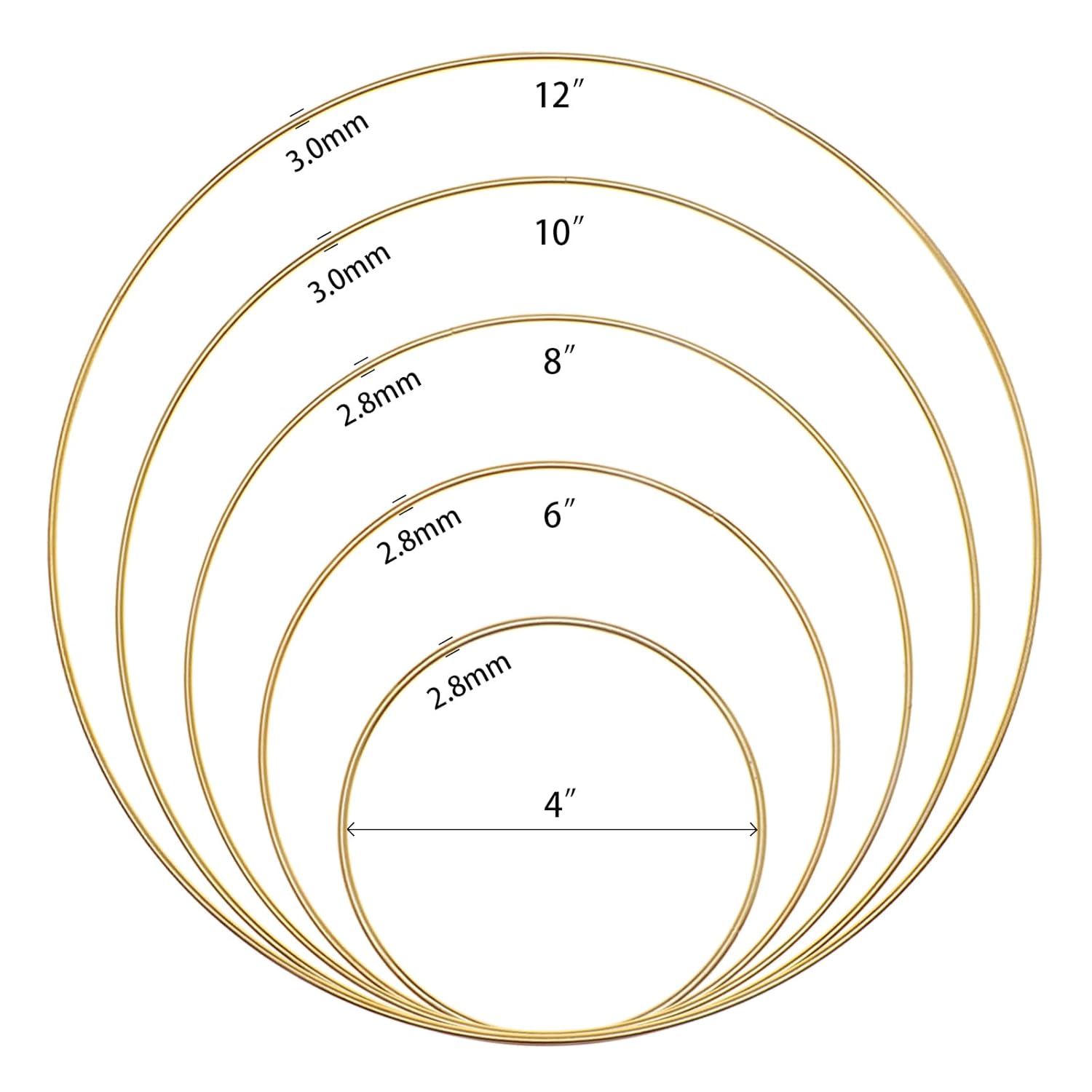 • Package Includes: 15 pieces 5 sizes gold metal hoops, 4 inch*3, 6 inch*3, 8 inch*3, 10 inch*3, 12 inch*3. You can make crafts large to small.