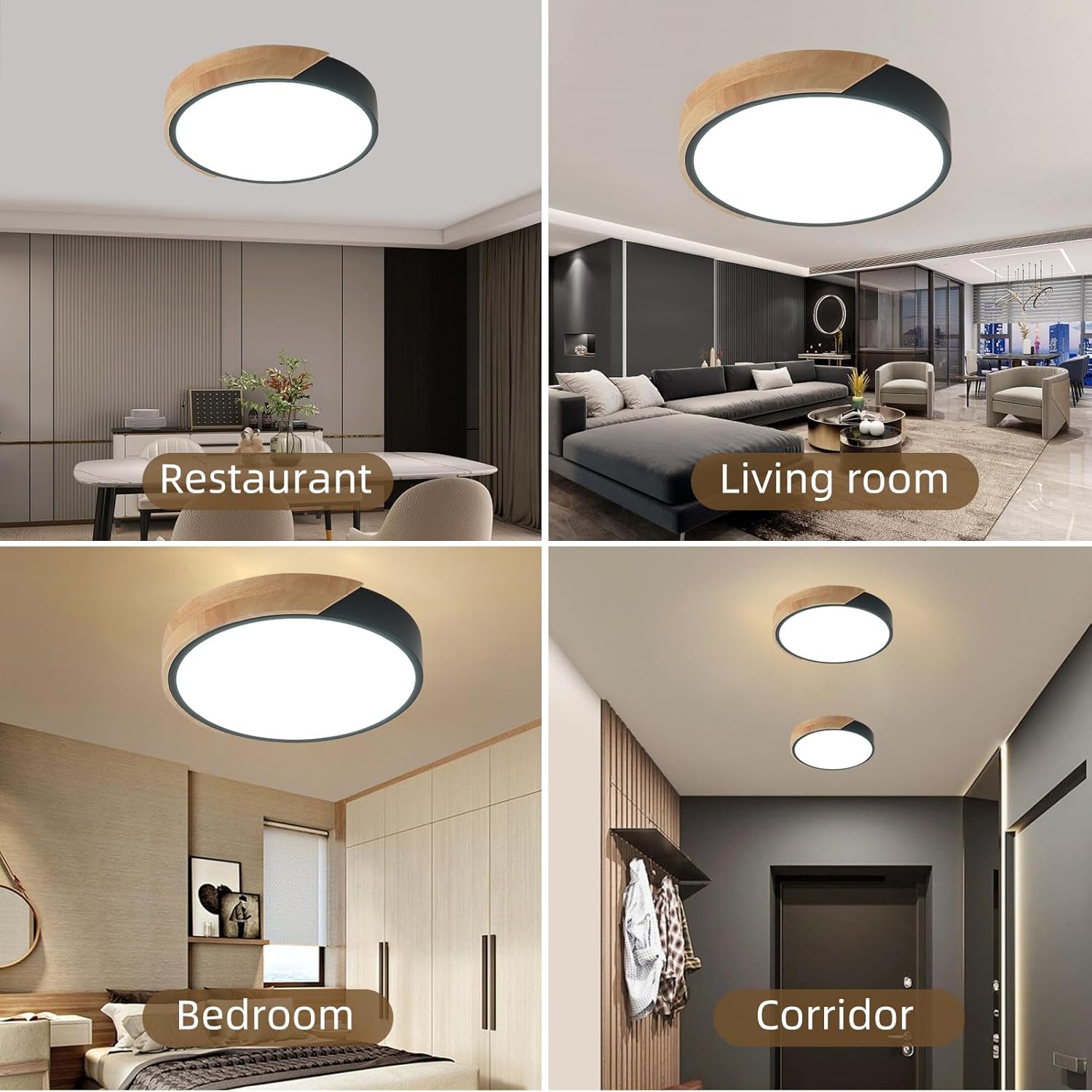 - Unique design of oak and iron:Flush mount light adopts iron base and high-quality acrylic lampshade, and the side edges are spliced with wood, the wood grain is clear, environmental protection and corrosion-resistant. Flush mount light fixture blend perfectly into any space, matching most furniture styles while creating a relaxing atmosphere. Modern ceiling light provide wonderful lighting for living room, foyer, kitchen, entry, stairway, corridor, bedroom, hotel and office, etc