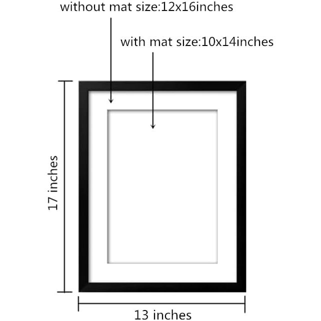 - Number of items in a pack/box: 2; The inner size of black frame is 12 x 16 inches / 30 x 40 cm, and the mat size (the actual display size) is 10 x 14 inches / 25.4 x 35.6 cm