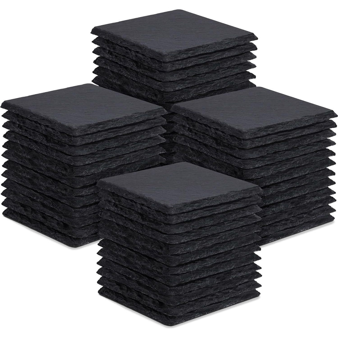 Slate Drink Coasters with Metal Holder, GOH DODD Set of 8 Black Coasters, 4 Inch Stone Coaster Set Coffee Table Decor Tabletop Protection for Home Office Kitchen Apartment, Round