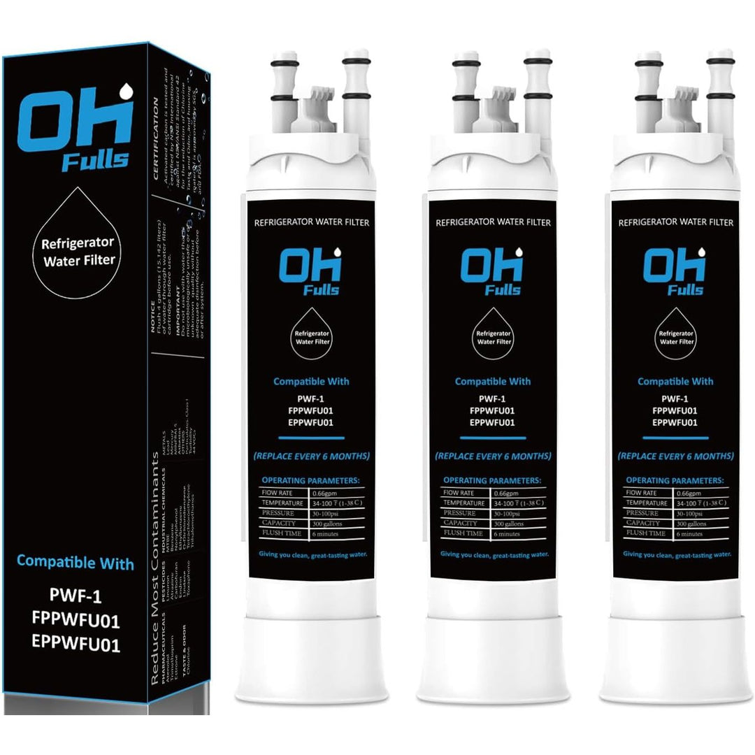 Refrigerator Water Filter Replacement Compatible with Frigidaire FPPWFU01 PurePour PWF-1 Electrolux EPPWFU01 PureAdvantage PWF-1 Water Filter (3 Pack)