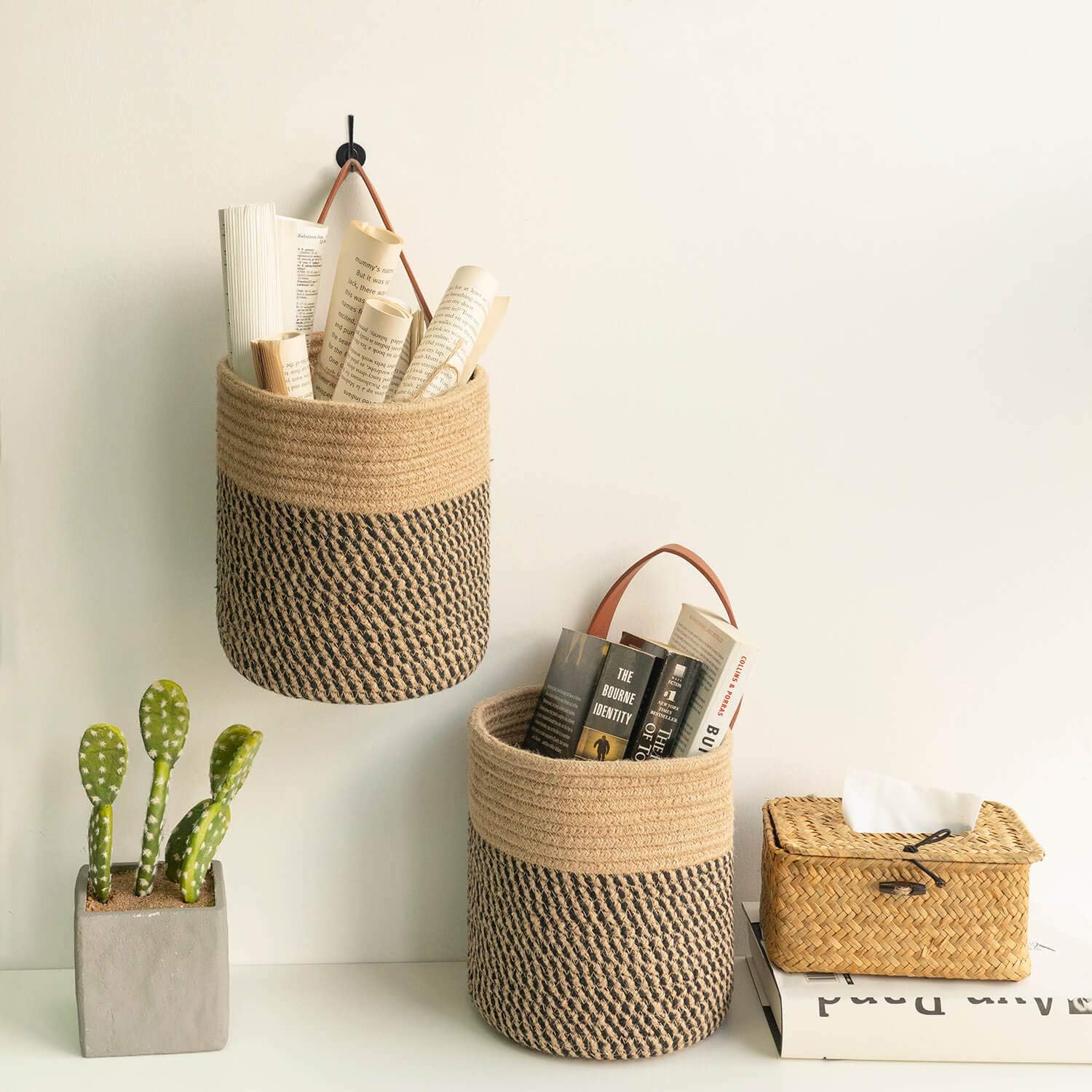 • Functional cute basket, Perfect to hold various household items such as makeup, toys of kids and cats, toilet paper, mail, candy. The hanging baskets can decorate living room, bedroom and garden, make pots for plants and flowers