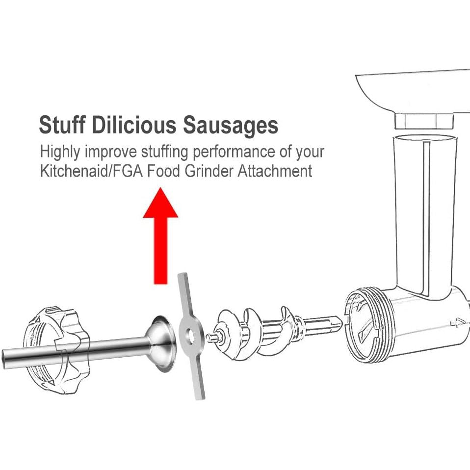 - Sausage Stuffer Kit Attachment: Stainless steel sausage stuffer tubes, more durable.With the 3 size sausage stuffer tubes you can make any sausages you like.(Polish sausage, Italian sausage, summer sausage, bratwurst and chorizo) stuffing tubes is longer to allow for more casing to loaded on.