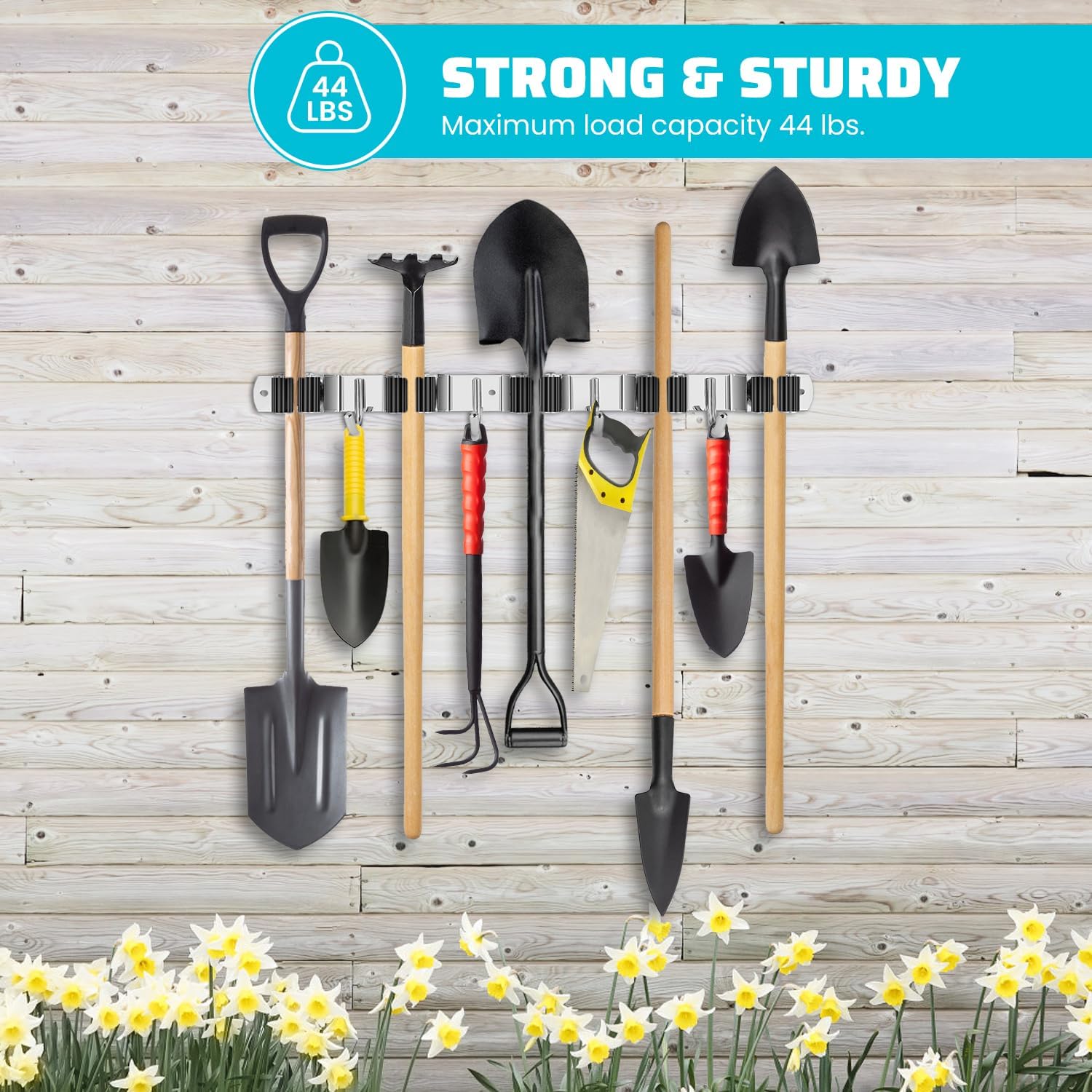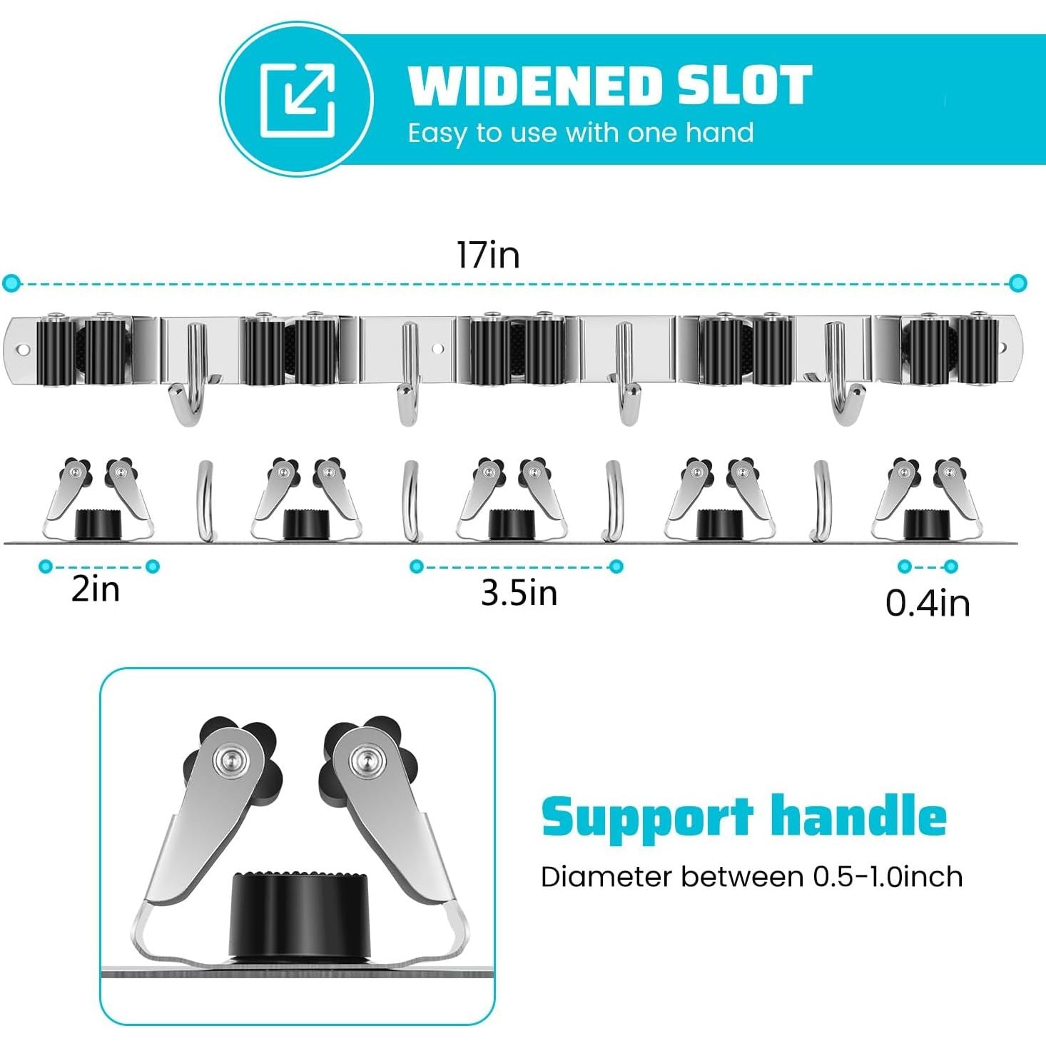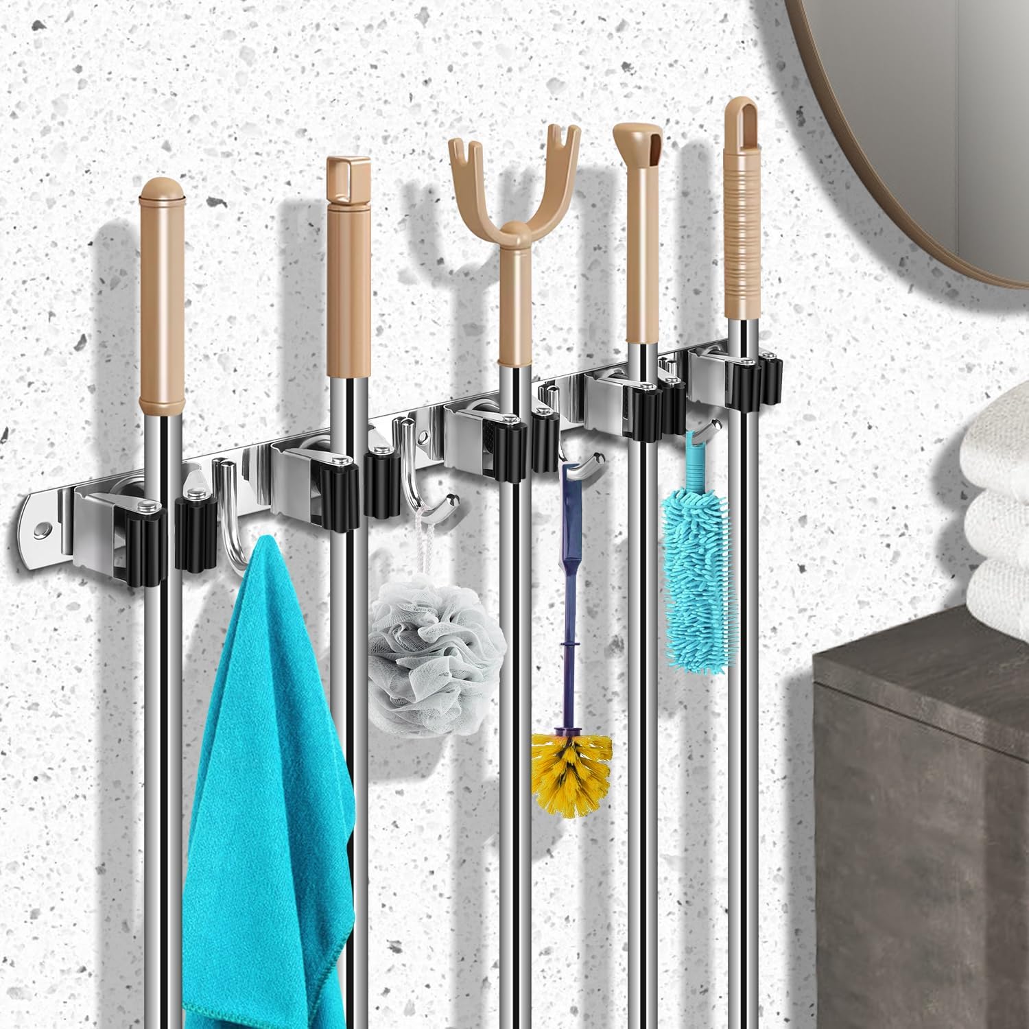 - 【Stainless Steel Material】This broom hooks wall mounted cleaning rack is made of SUS 304 stainless steel. It is more robust than the aluminum and plastic holder, anti-rust and anti-corrosion.It can bear about 20kg.