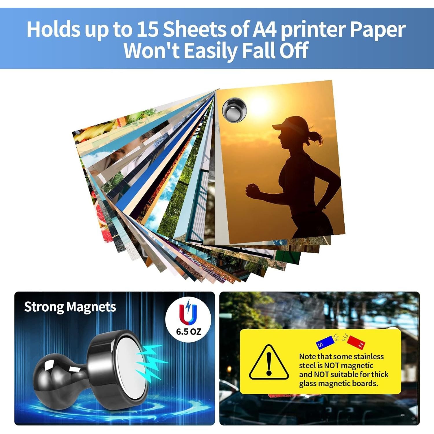 • 🌻【Strong Fridge Magnets】Do not be fooled by these magnets fridge, They can hold up to 15 sheets of A4 printer paper at once with just a tiny magnet. Even possible to use them in the kitchen to hold cooking tools that weigh no more than 6.5 OZ and the cooking tools won't easily fall off.